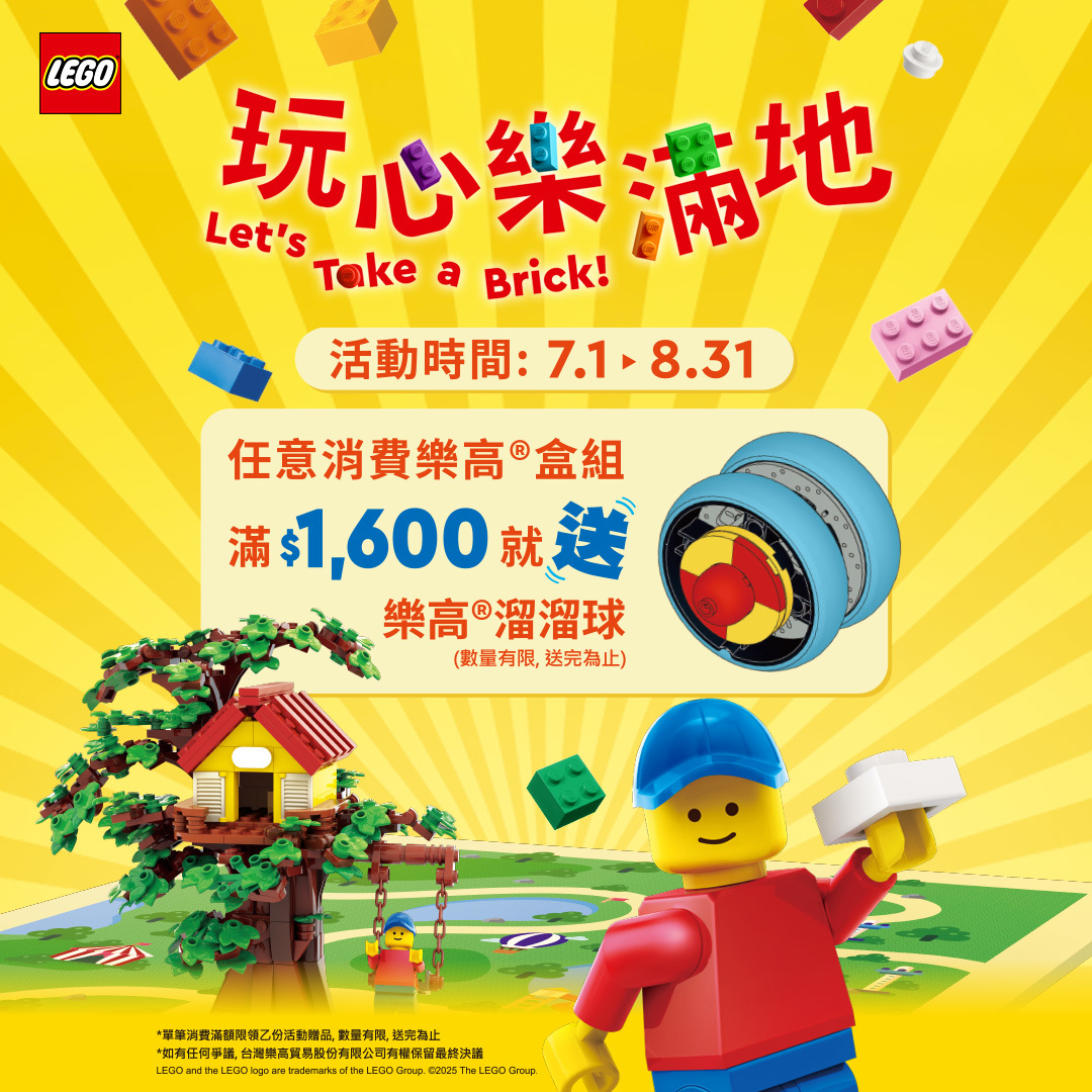 一年一度樂高暑假活動即將登場!生活中總是面對各式各樣的作業及忙碌。今年暑假,台灣樂高®邀請大小朋友放下學業與生活壓力,發揮玩樂精神Let's Take a BRICK,一起「玩心樂滿地」!於即日起至8月31日期間,創意奇才小樂將現身全台,輪番在北中南熱門地點與大小朋友見面,提供滿滿的情緒價值與應援支持,用創意拼砌專屬於這個夏天的找樂點地圖!