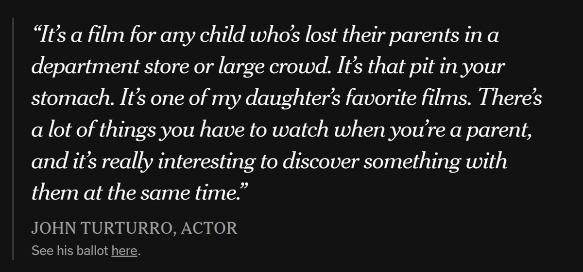 這是源自《紐約時報》舉辦的「21世紀百大電影」評選,邀請超過 500 位導演、演員及影評人,票選出 2000 年以來最棒的電影。《神隱少女》自然榜上有名,還是演員 & 導演蘇菲亞·柯波拉 ( Sofia Coppola ) 的私心最愛之一。其他如恐怖大師史蒂芬·金也 ( Stephen King ) 參與票選,內容話題性十足。