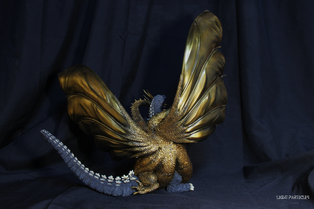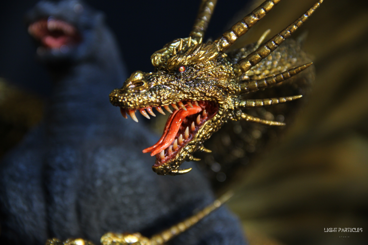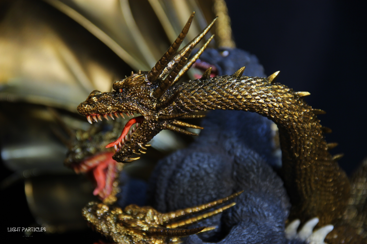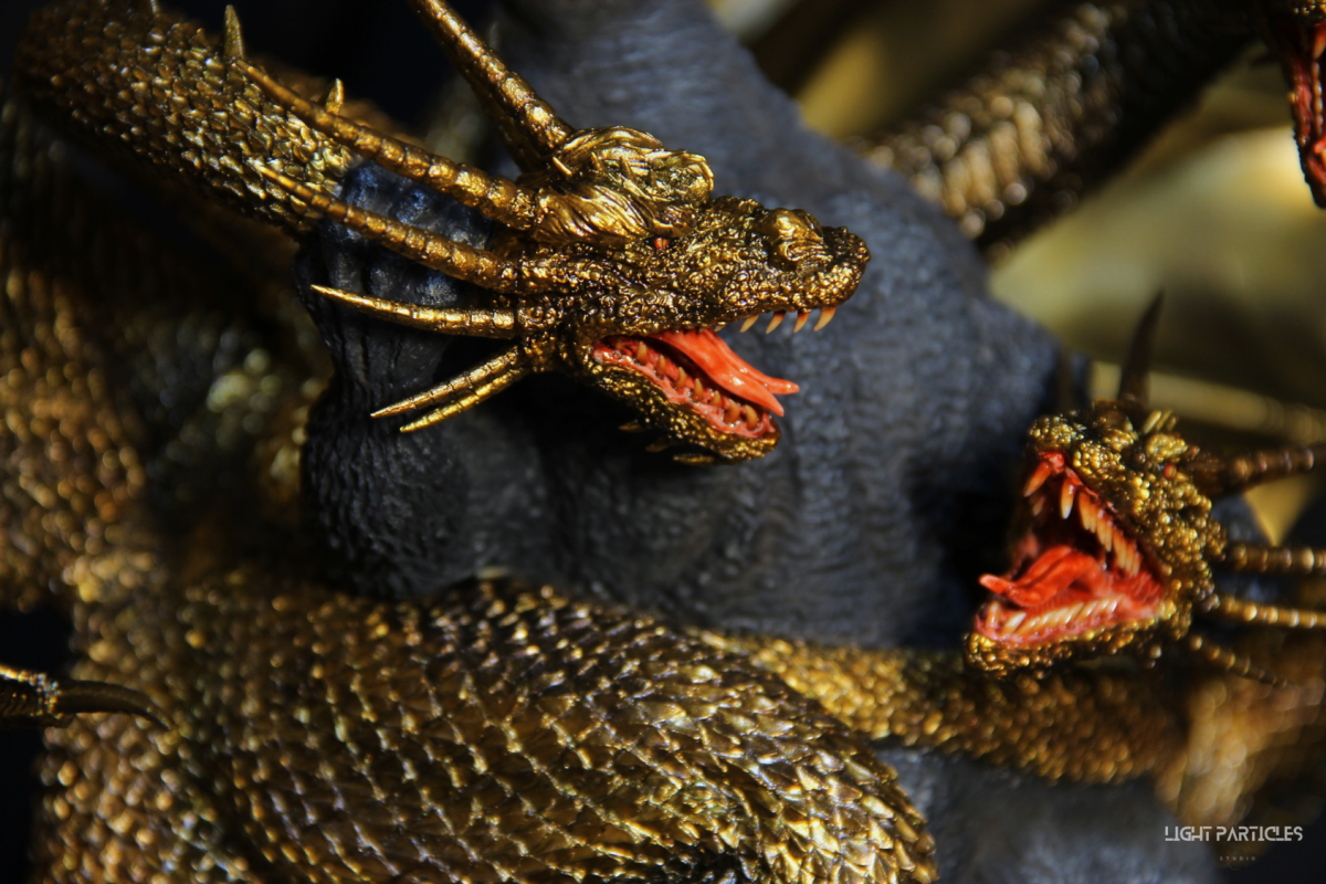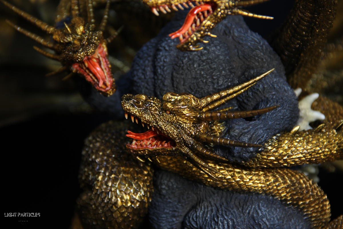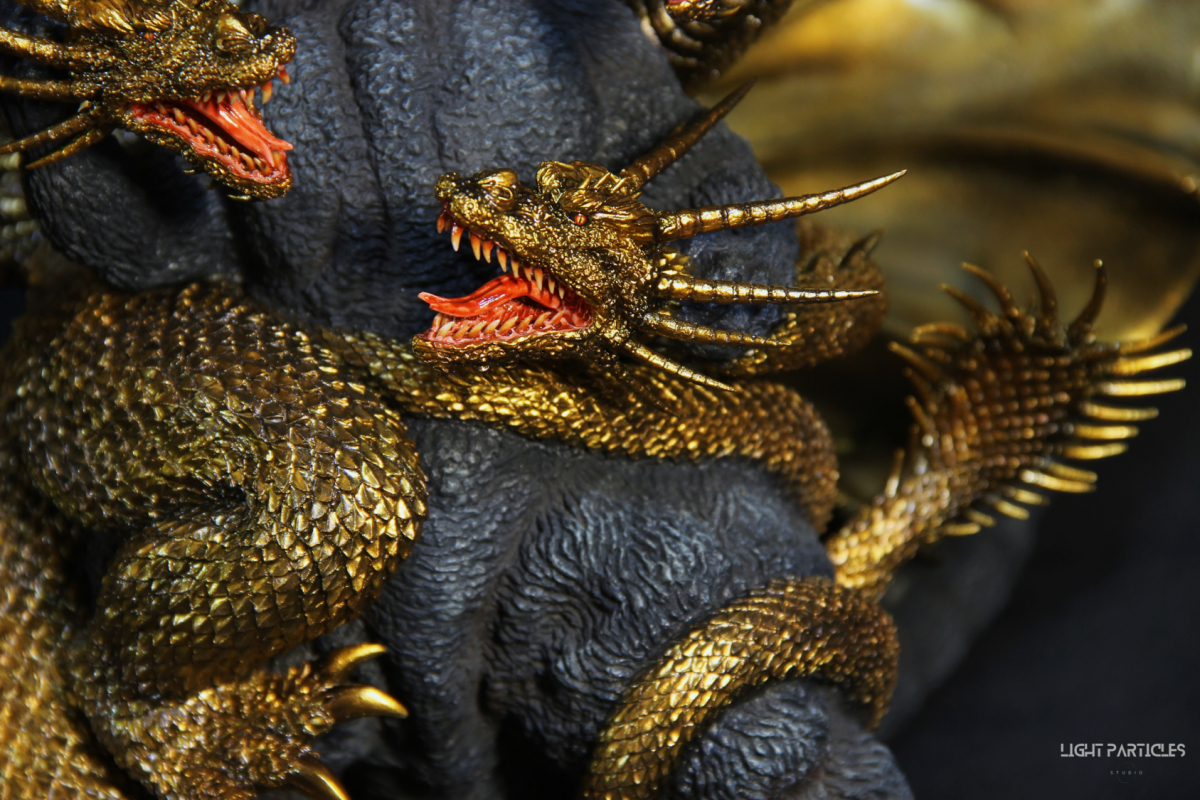 除了將密合度修復外,還需要將基多拉的鱗片進行重新雕塑補齊,把紋理接順,這組套件真的花不少時間在基多拉紋理重製上。最後,根據客戶需求使用銅色系金屬漆對王者基多拉噴塗上色。透過透明色系增加層次外,也用砝瑯漆把層次洗出來,增加整體的厚重感。套件本身翻模的顏色很適合保留下來在牙齒與指甲部位,塗裝後讓這些部位保留半透明感。很開心能把這套經典套件完成,希望大家喜歡~