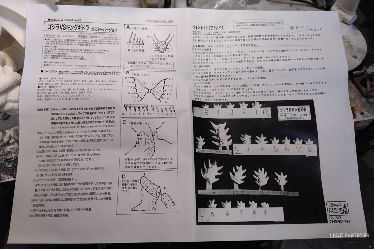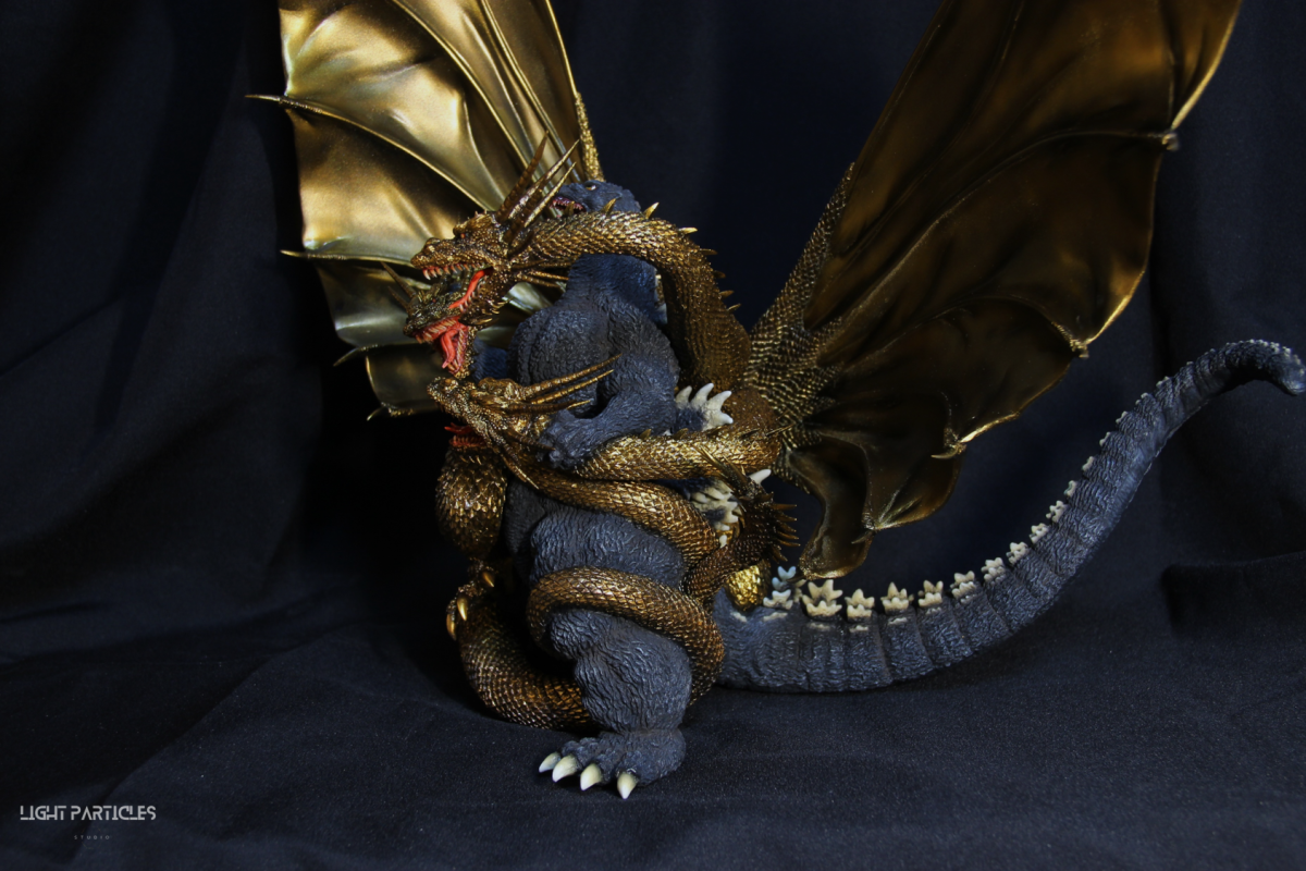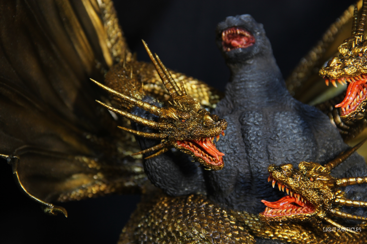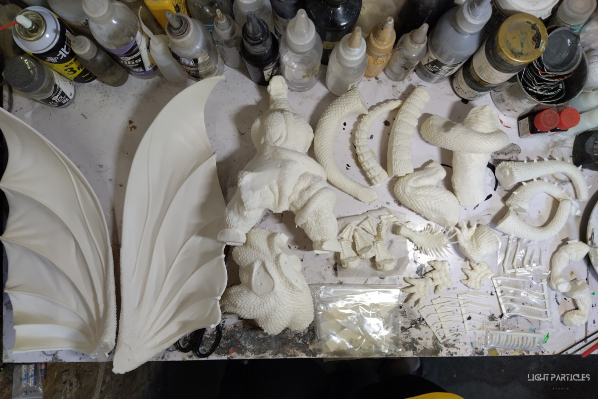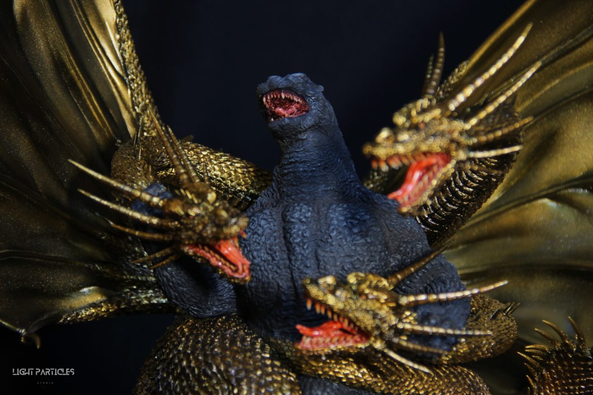 除了將密合度修復外,還需要將基多拉的鱗片進行重新雕塑補齊,把紋理接順,這組套件真的花不少時間在基多拉紋理重製上。最後,根據客戶需求使用銅色系金屬漆對王者基多拉噴塗上色。透過透明色系增加層次外,也用砝瑯漆把層次洗出來,增加整體的厚重感。套件本身翻模的顏色很適合保留下來在牙齒與指甲部位,塗裝後讓這些部位保留半透明感。很開心能把這套經典套件完成,希望大家喜歡~