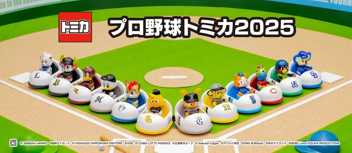 日本玩具製造商 TAKARA TOMY 旗下的合金小汽車品牌「TOMICA 多美小汽車」,與日本職棒攜手,推出最新的「日本職棒TOMICA 2025」系列,一次帶來雙聯盟、 12 支球隊的吉祥物小車車!每款各 1,100 日圓,預計於 2025 年 08 月發售。
