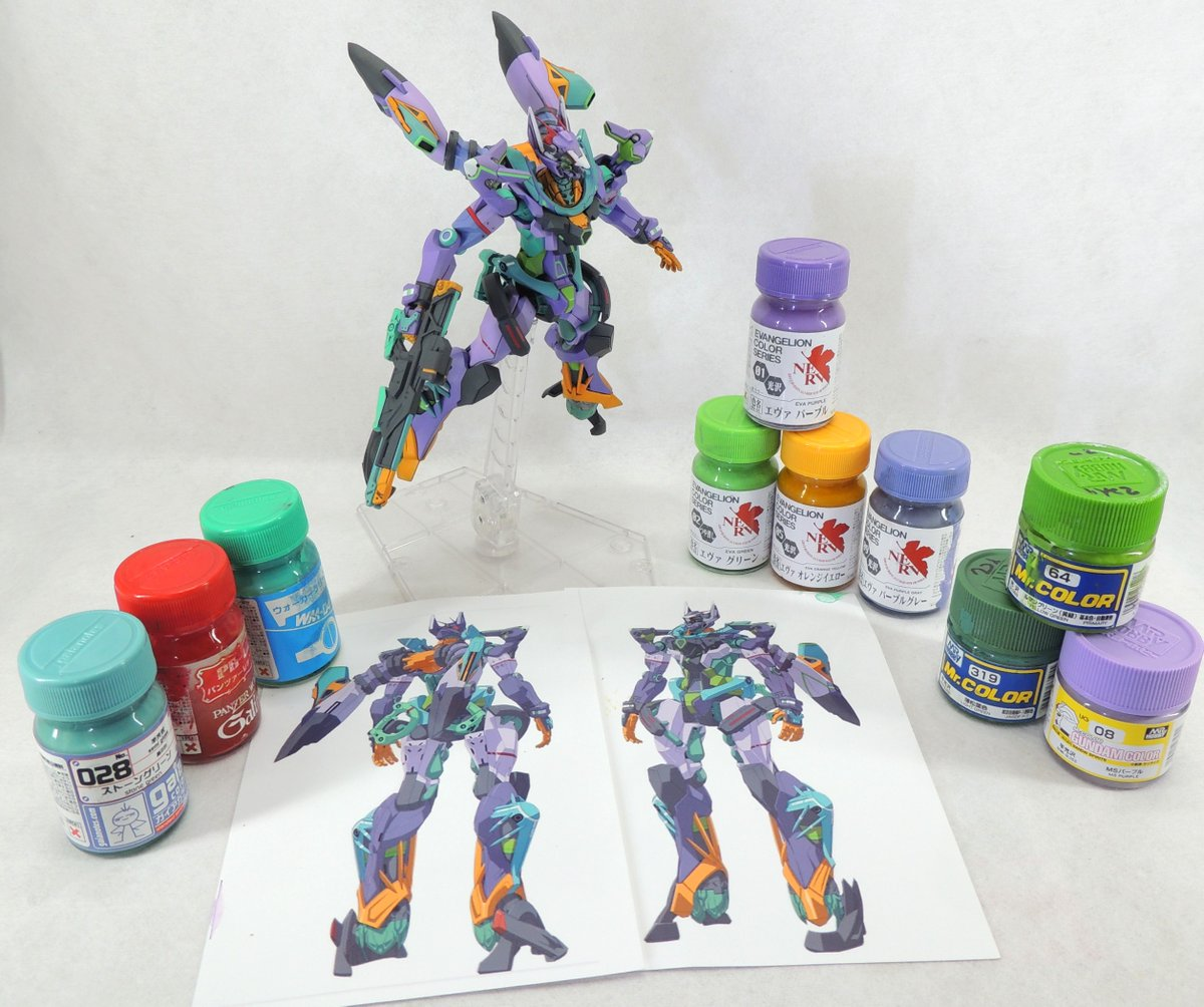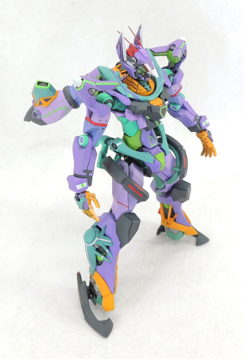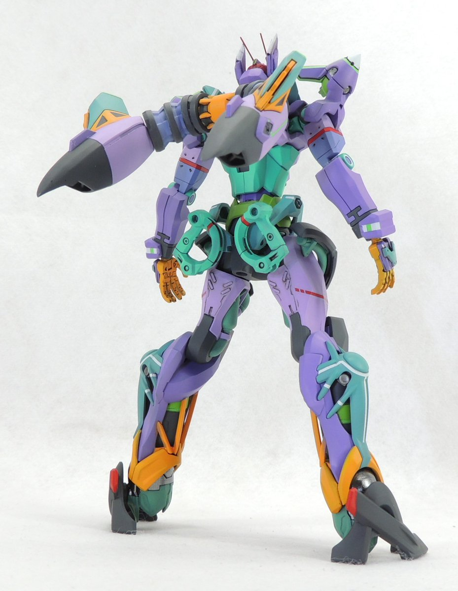 整體是以「HG 1/144 GQuuuuuuX」為基礎,再用塑膠板跟黃銅線手工加工,重現出 GFreD 超有辨識度的頭部設計。塗裝方面則選用了設定裡的紫色主色調,還用上了「蓋亞筆」推出的《新世紀福音戰士》配色系列來上色——畢竟一出場就被大家說長得像初號機,也難怪會選這個色系。