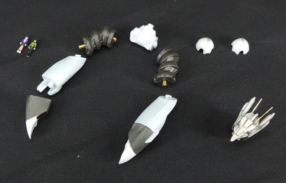 背包部分則是用直徑2mm的黃銅線接合,加上後嵌式改造,噴射口的前端則是用0.3mm的塑膠板加上瞬間膠補土做出尖尖的造型。