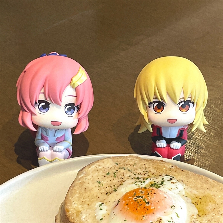兩位女主角「拉克絲・克萊因」、「卡佳里・由拉・阿斯哈」這次都以劇場版登場的駕駛服造型製作,在 11 公分高尺寸下再現圓滾滾的臉頰、可愛的笑容與抱膝坐姿,頸部還設有可微調俯仰、左右傾斜角度的關節,能夠隨自己喜好調整。