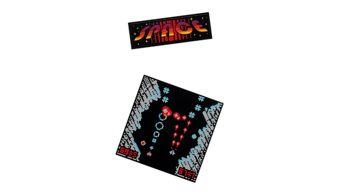 本作一共有 468 片零件,組完之後可以得到一台高約 16 公分、以紅黑色為主基調的復古街機機台,配備了可供雙人遊玩的操縱手把與按鈕、能夠實際作用的投幣孔,並以太空射擊遊戲為主題的螢幕、機身點綴。除了頂部之外,機身修飾掉了大部分的積木顆粒感,擺起來相當好看。