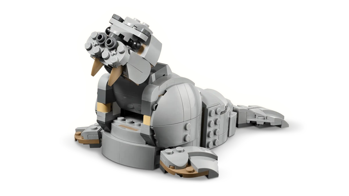 另外兩個拼搭選擇是可以張開大嘴的河馬跟海象,小編個人也非常喜歡河馬的造型,尤其是那對與犀牛模型堆砌方式不同、但看起來同樣份量爆棚的後腿造型非常讚;但海象在抬起頭時會在脖子、胸部位置呈現出一個有點微妙的空洞感,感覺有改造空間,或是捨棄掉可動追求更完美的造型呈現。