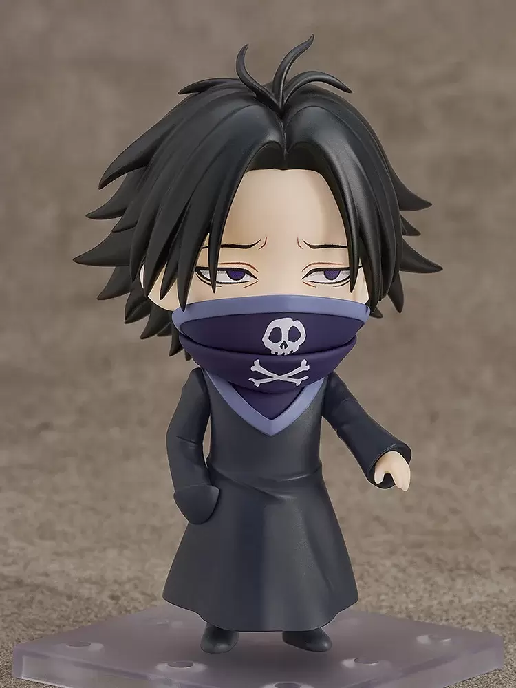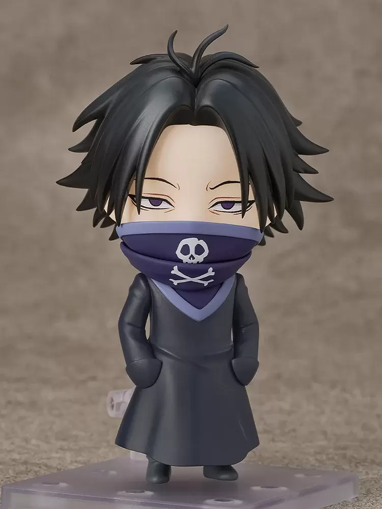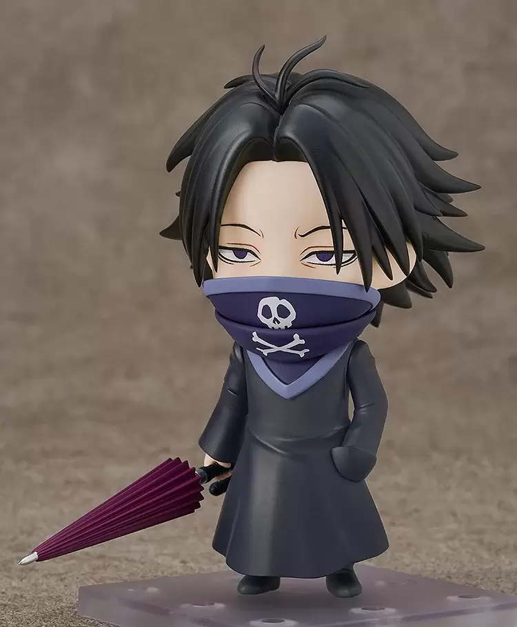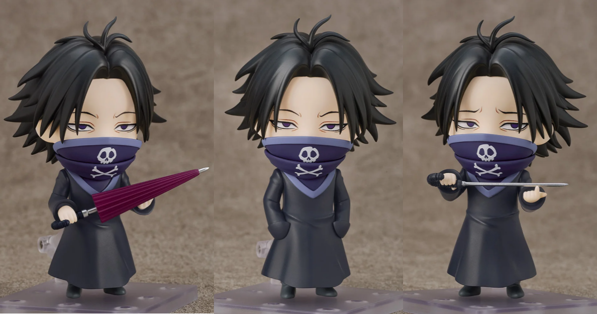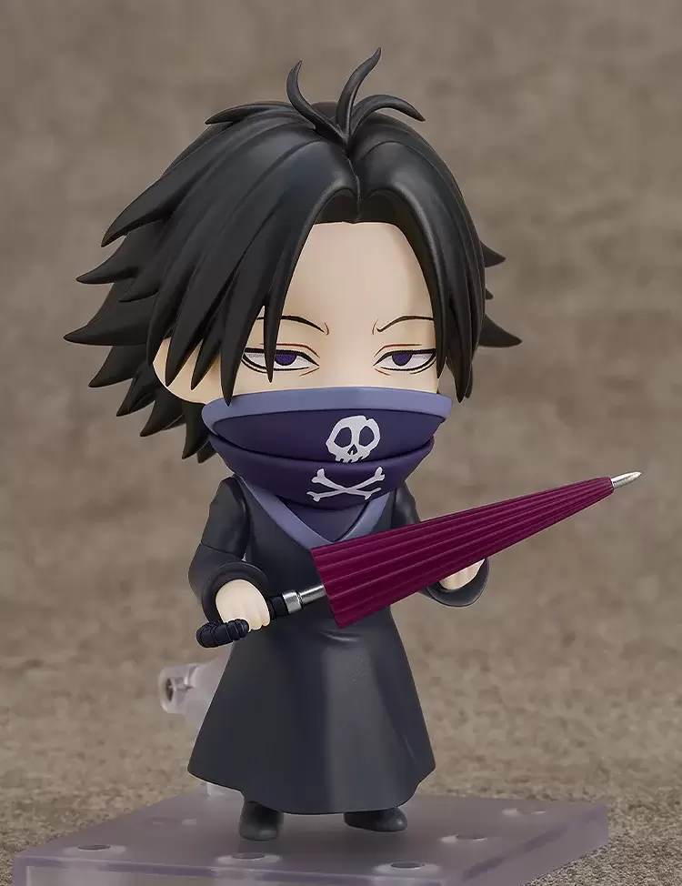 「黏土人 飛坦」,尺寸約高 10 公分,以可愛比例再現飛坦的骷髏圖樣的面罩和一身黑斗篷,冷冷的眼神也很還原!附有兩款表情零件,分別為「認真臉」、「斜看臉」,搭配武器「雨傘」、「預藏刀」等配件,賞玩酷酷的各種姿態!Good Smile Company線上商店特典為幻影旅團圖樣的特製圓形台座。
