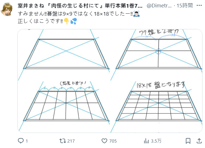 然而這個人,就是當時跟村田同為助手,現在也是漫畫家的室井正音 (室井まさね),事實上他在看到網友分享後,也回應了 : 「當時整天只顧著畫棋盤和棋子,連角色家裡長什麼樣都沒印象。」