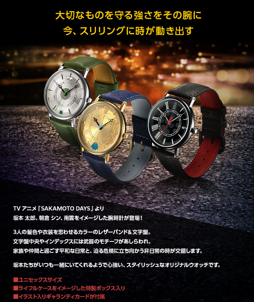 近日官方宣布,與本季播出動畫下半季的《SAKAMOTO DAYS 坂本日常》合作,以其為主題製作的聯名手錶,共計三款人物樣式。售價為 21,780 日圓,目前已可以於 PREMICO 官網開放預購。