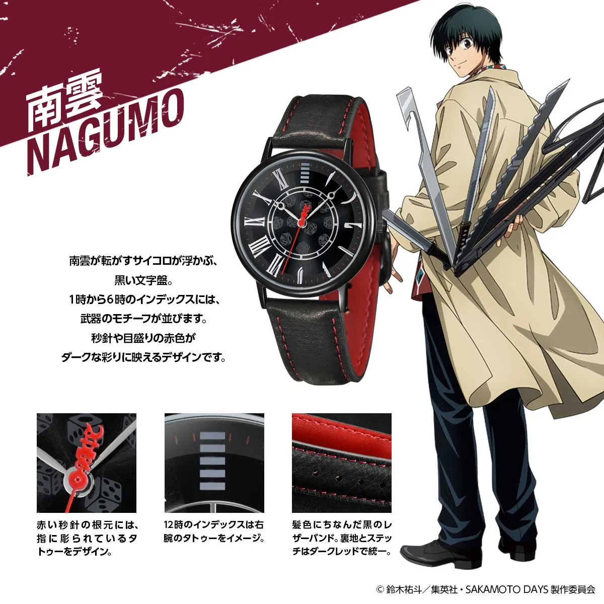 這次一口氣推出三款設計,分別以坂本太郎、朝倉新、南雲與市三位人氣角色為主題製作。這三款手錶的錶帶與錶盤設計,配色完全對應角色的髮色與服裝風格,連細節都超講究!錶面上還巧妙加入角色愛用的武器圖騰,把日常與非日常交織在一起。