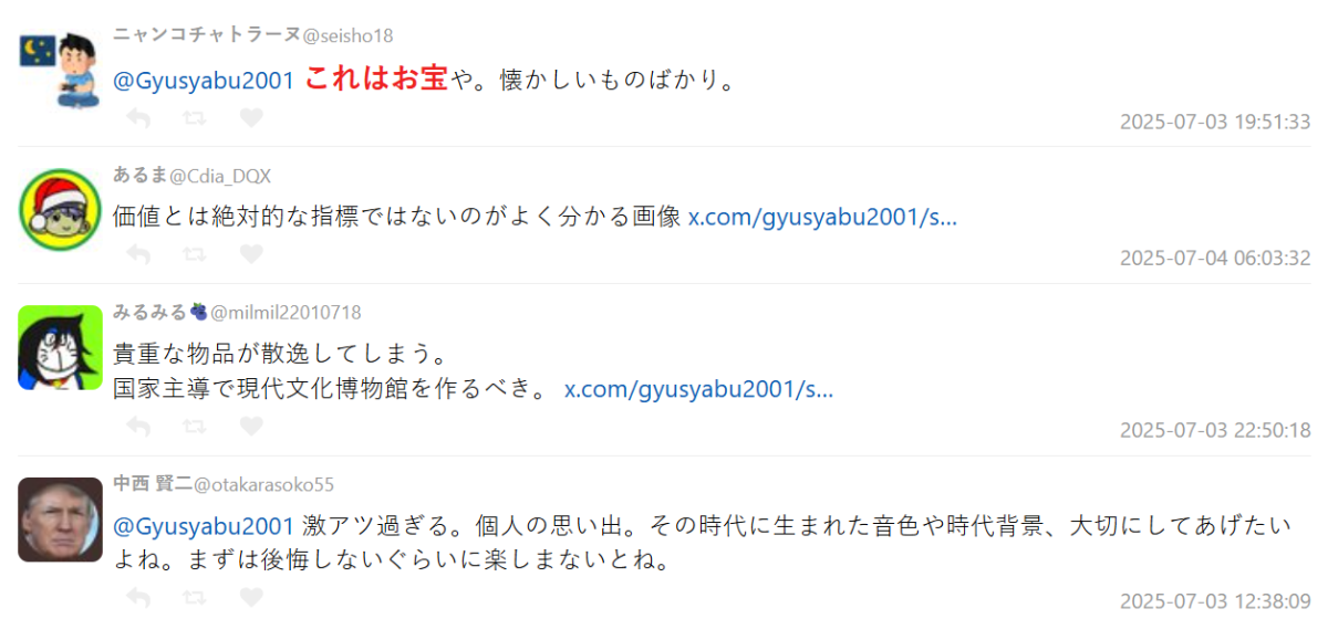 這也讓不少網友感嘆:「這些東西根本是寶藏,超懷念」、「不懂的人會覺得是垃圾,只有同好才知道價值」、「應該也可以收藏在文化博物館的東西了...」,畢竟這些東西對於了解的人是寶物,但如果沒有興趣的人,就只是一些年代的遺留物而已。