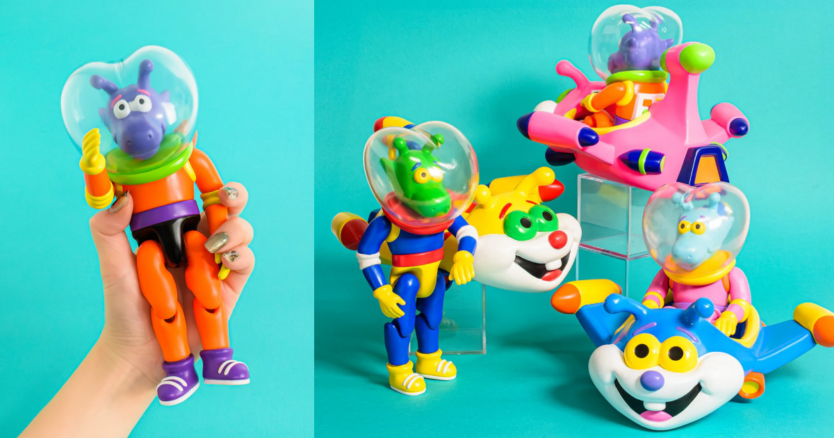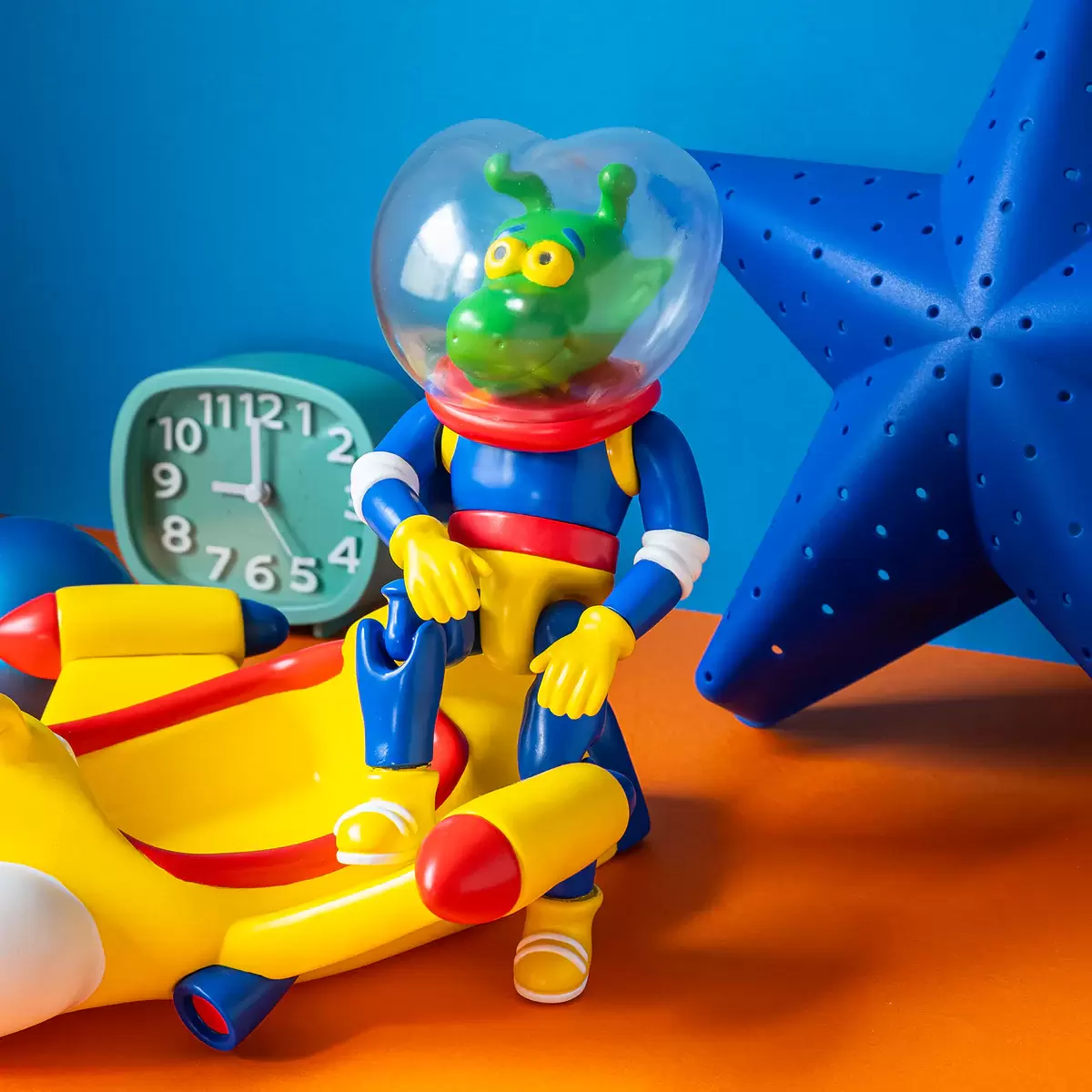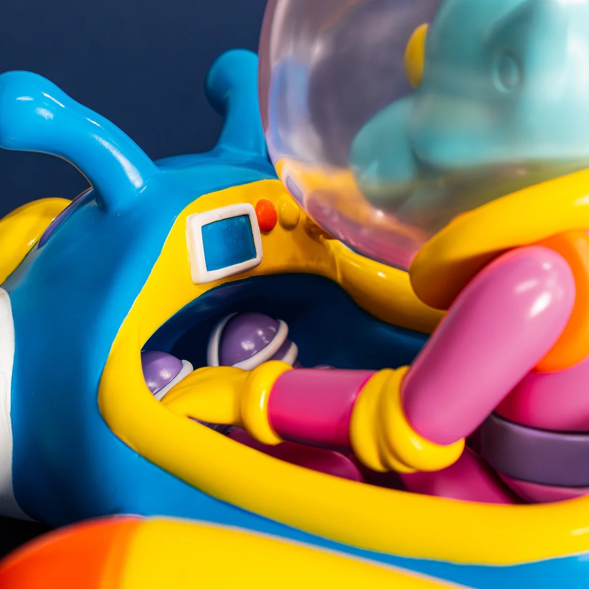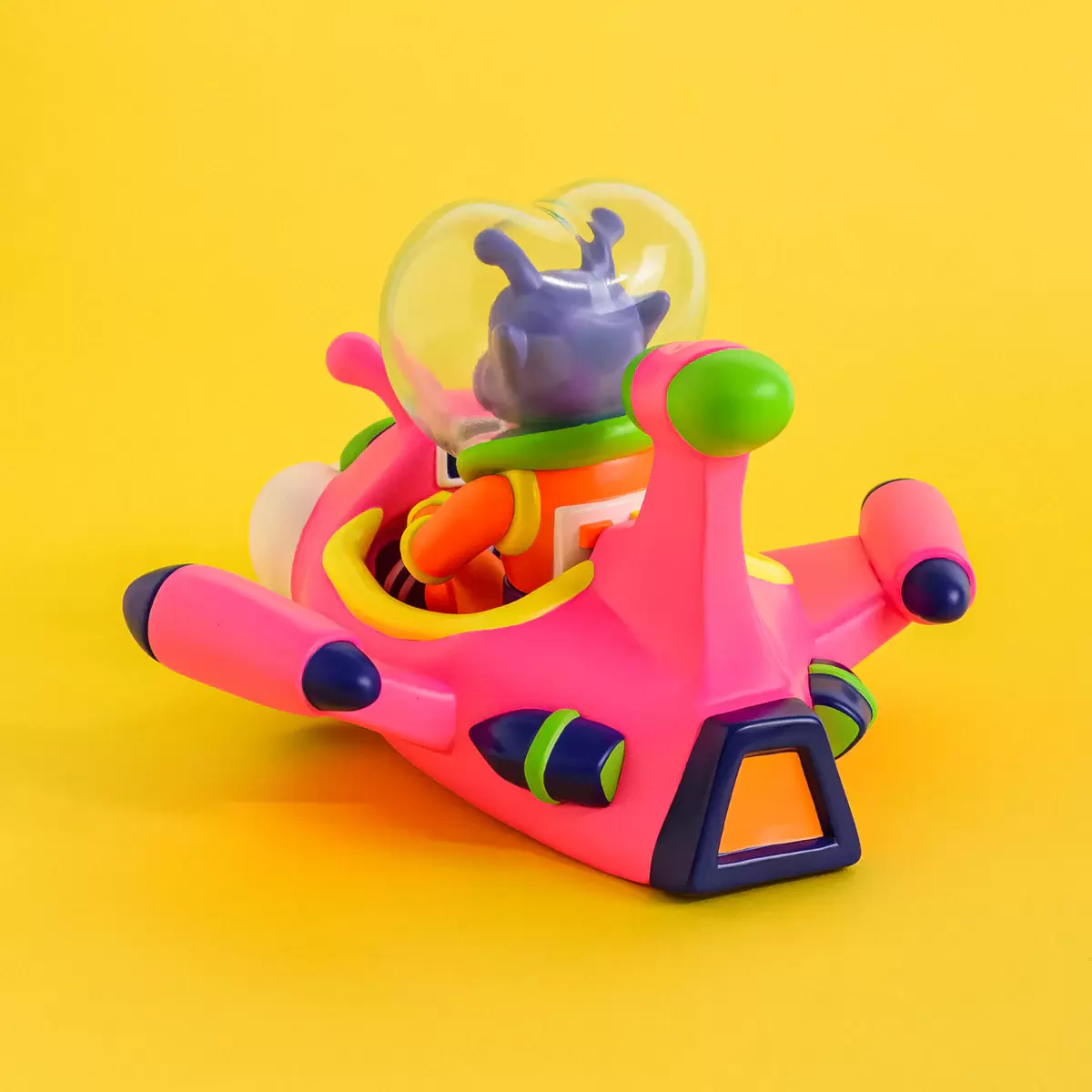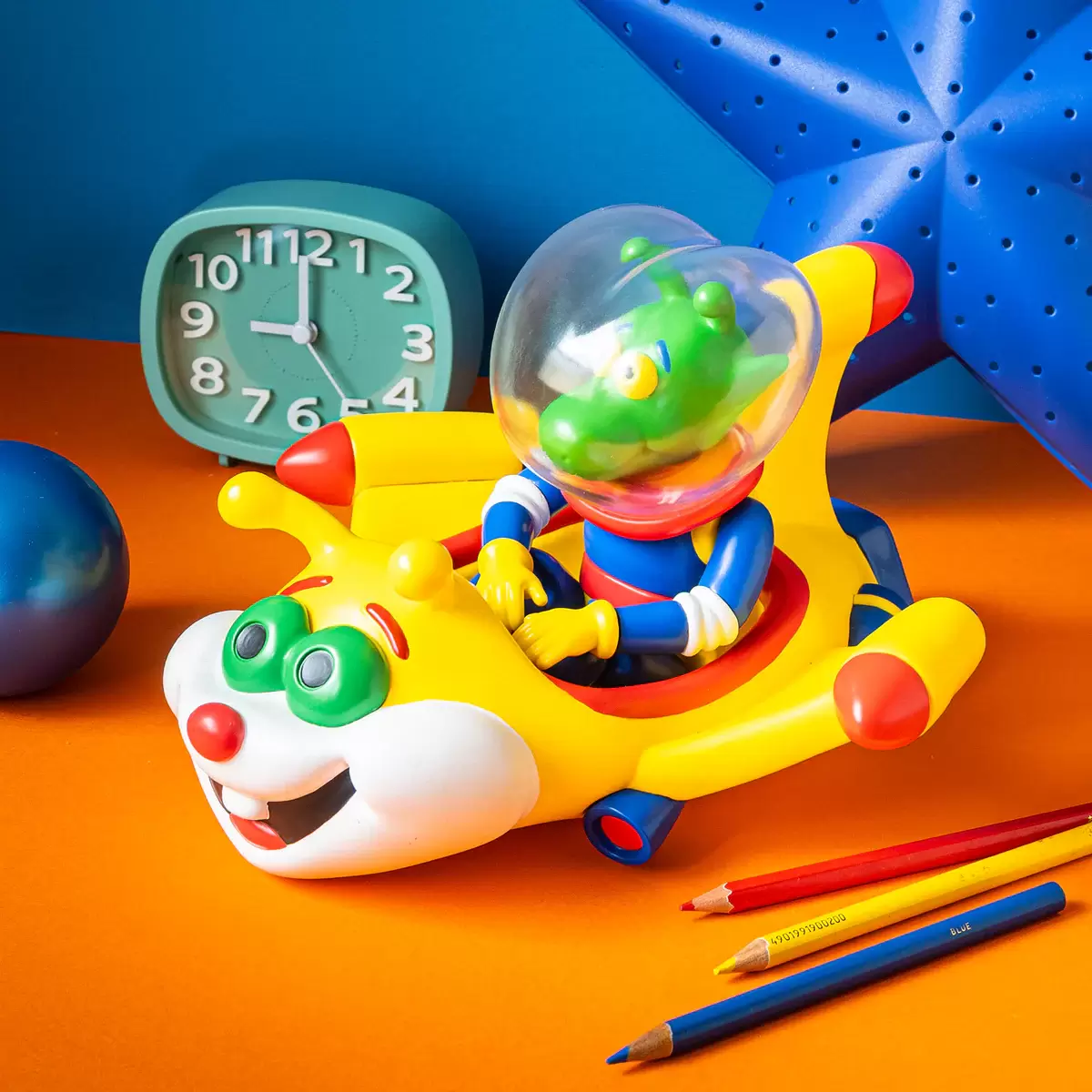 載具的 Space Jet 則高約 12.5 公分,還原了充滿卡通感的臉部造型與機身,可以將 Space People 放置在駕駛座結合把玩,並提供三種配色的款式,大大的展現山崎老師創作的強大魅力!