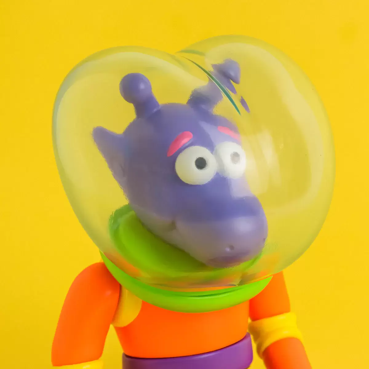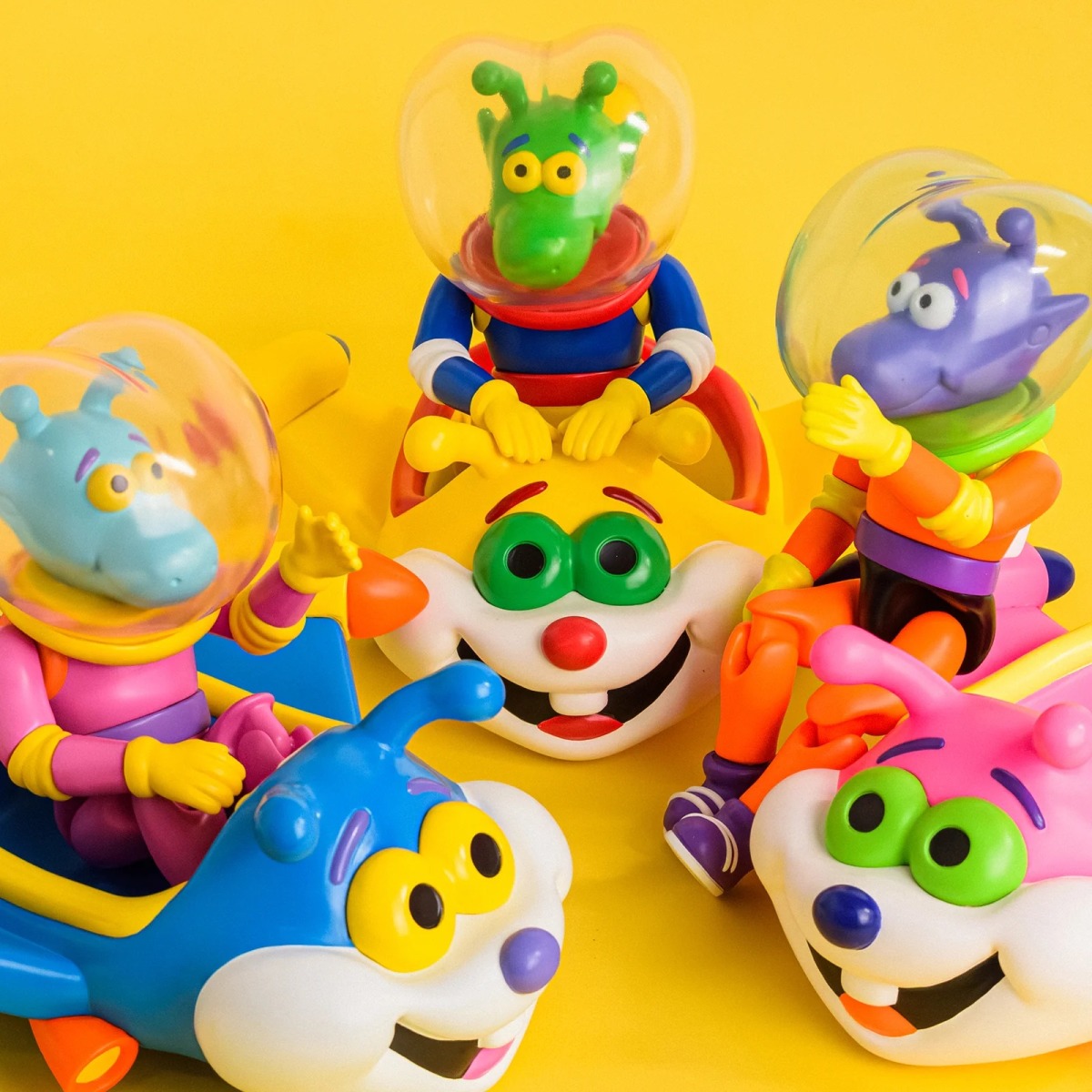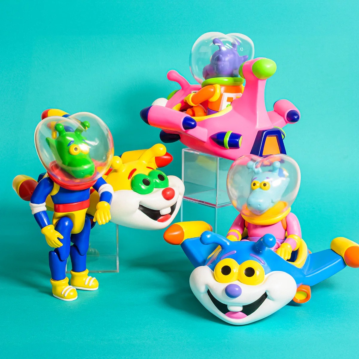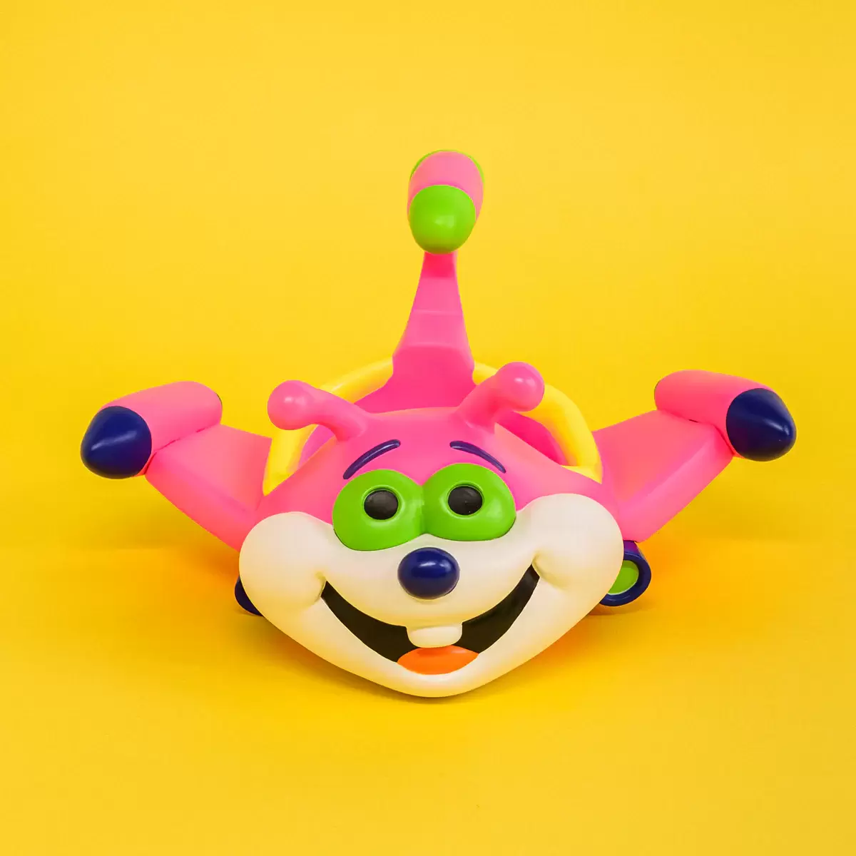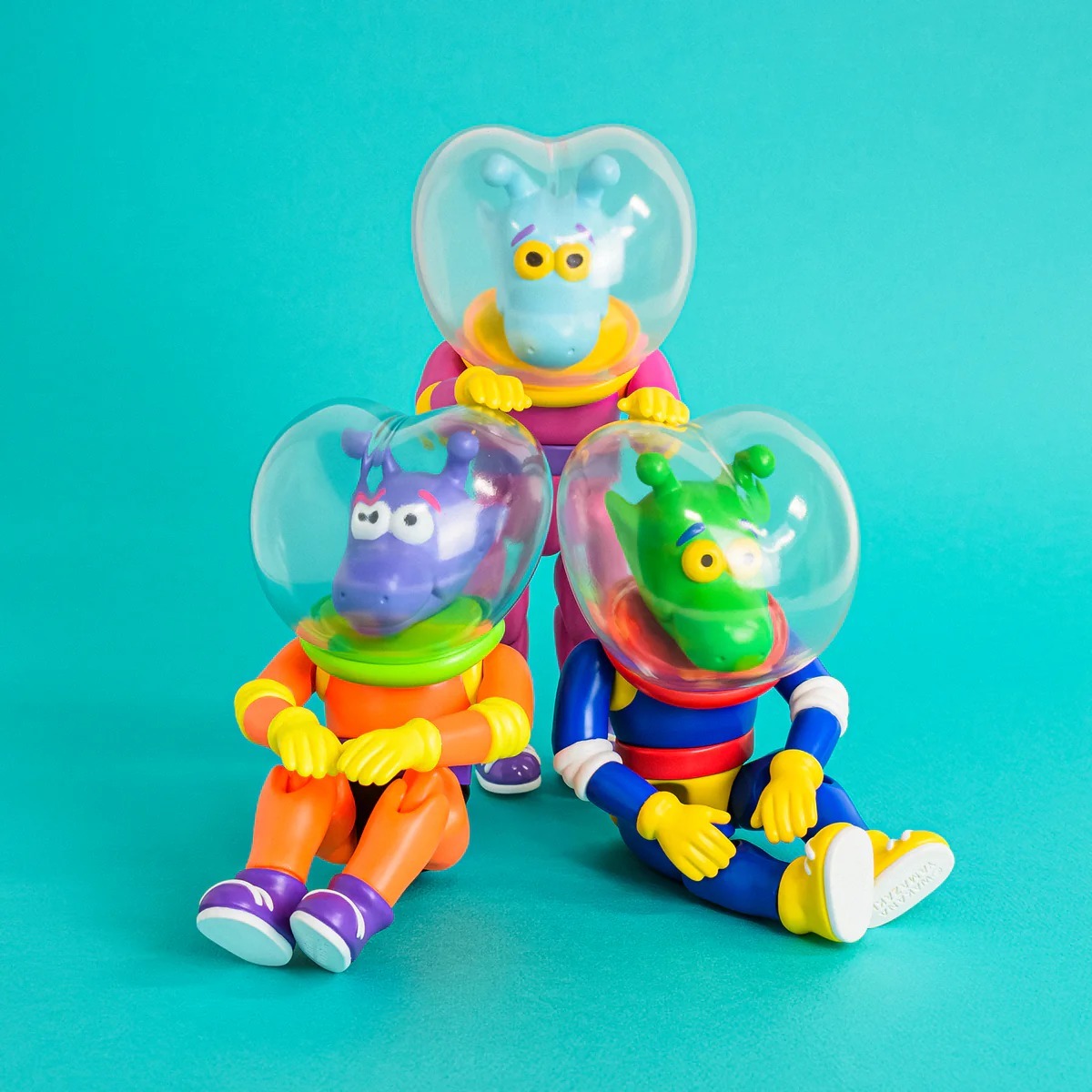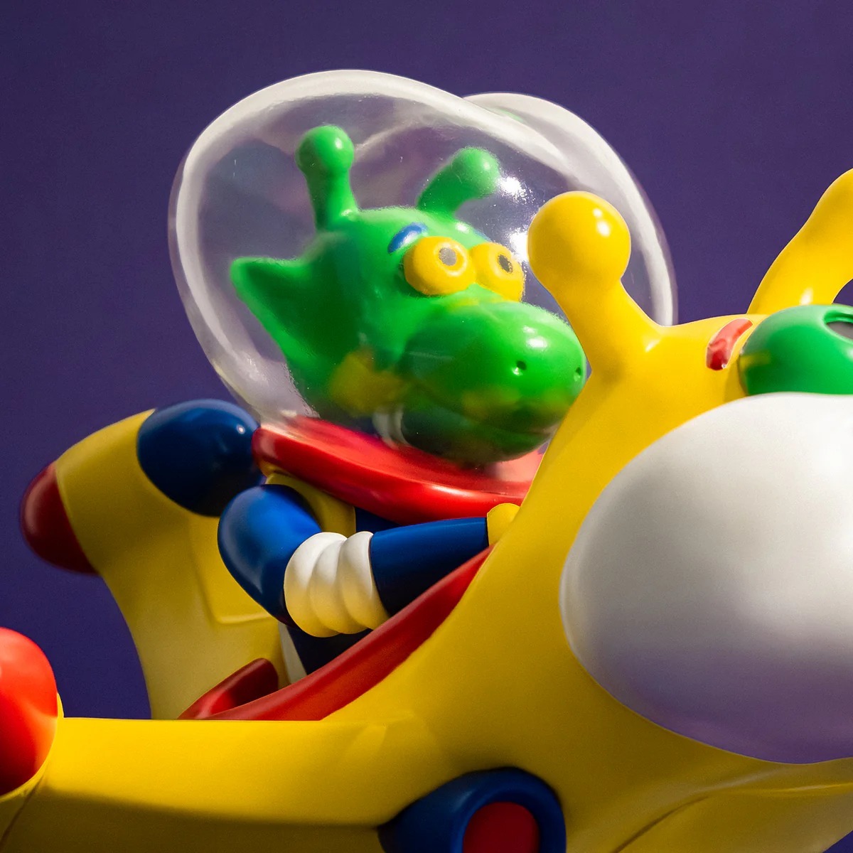 載具的 Space Jet 則高約 12.5 公分,還原了充滿卡通感的臉部造型與機身,可以將 Space People 放置在駕駛座結合把玩,並提供三種配色的款式,大大的展現山崎老師創作的強大魅力!