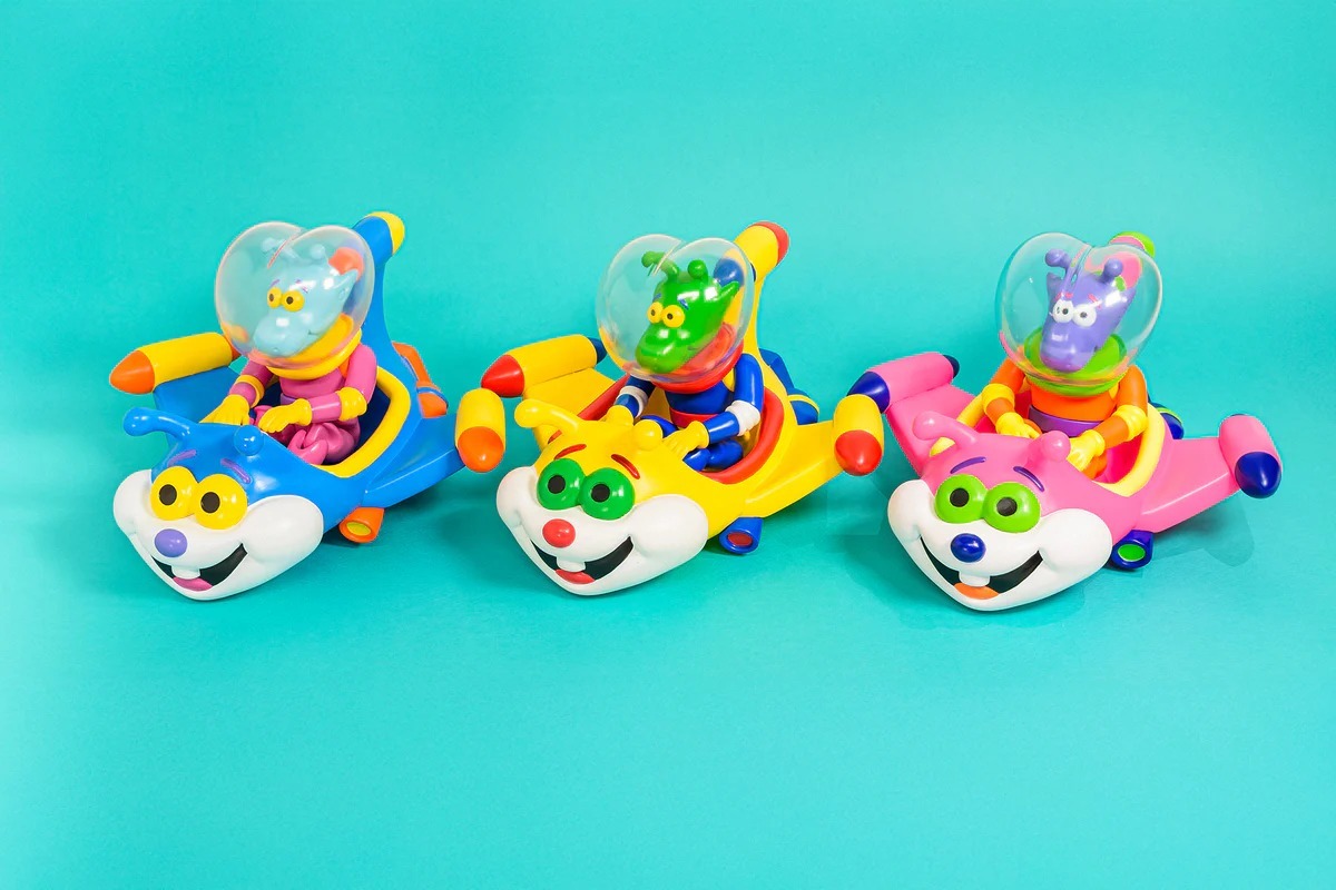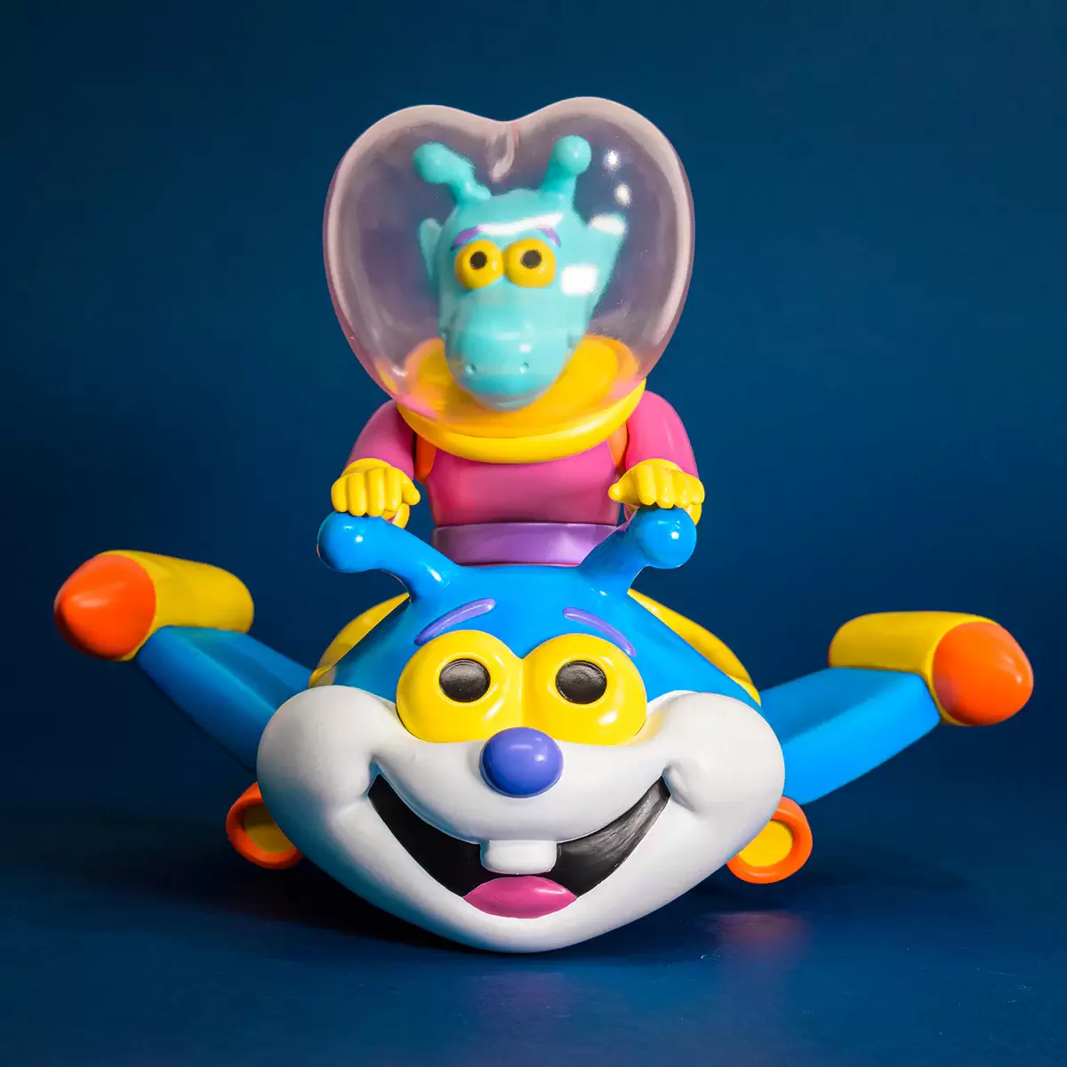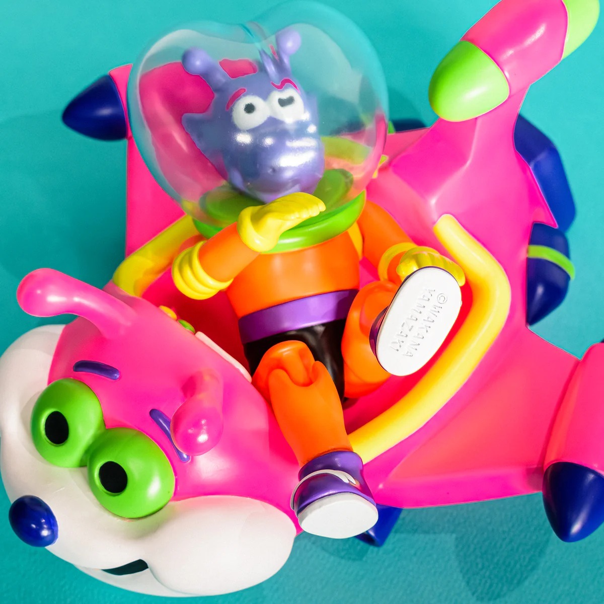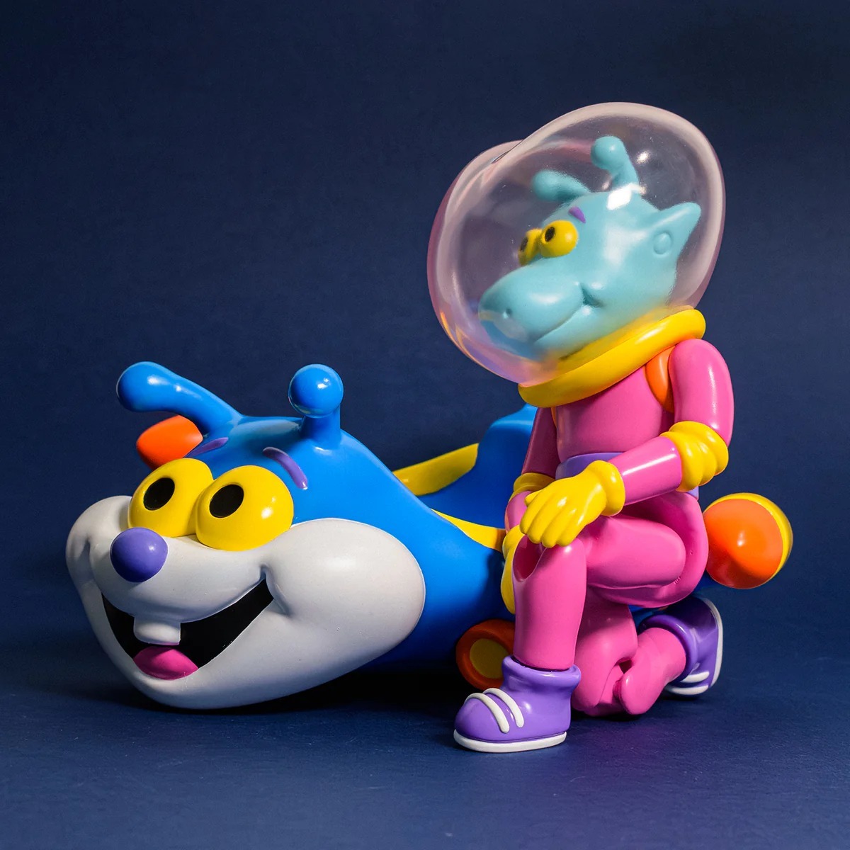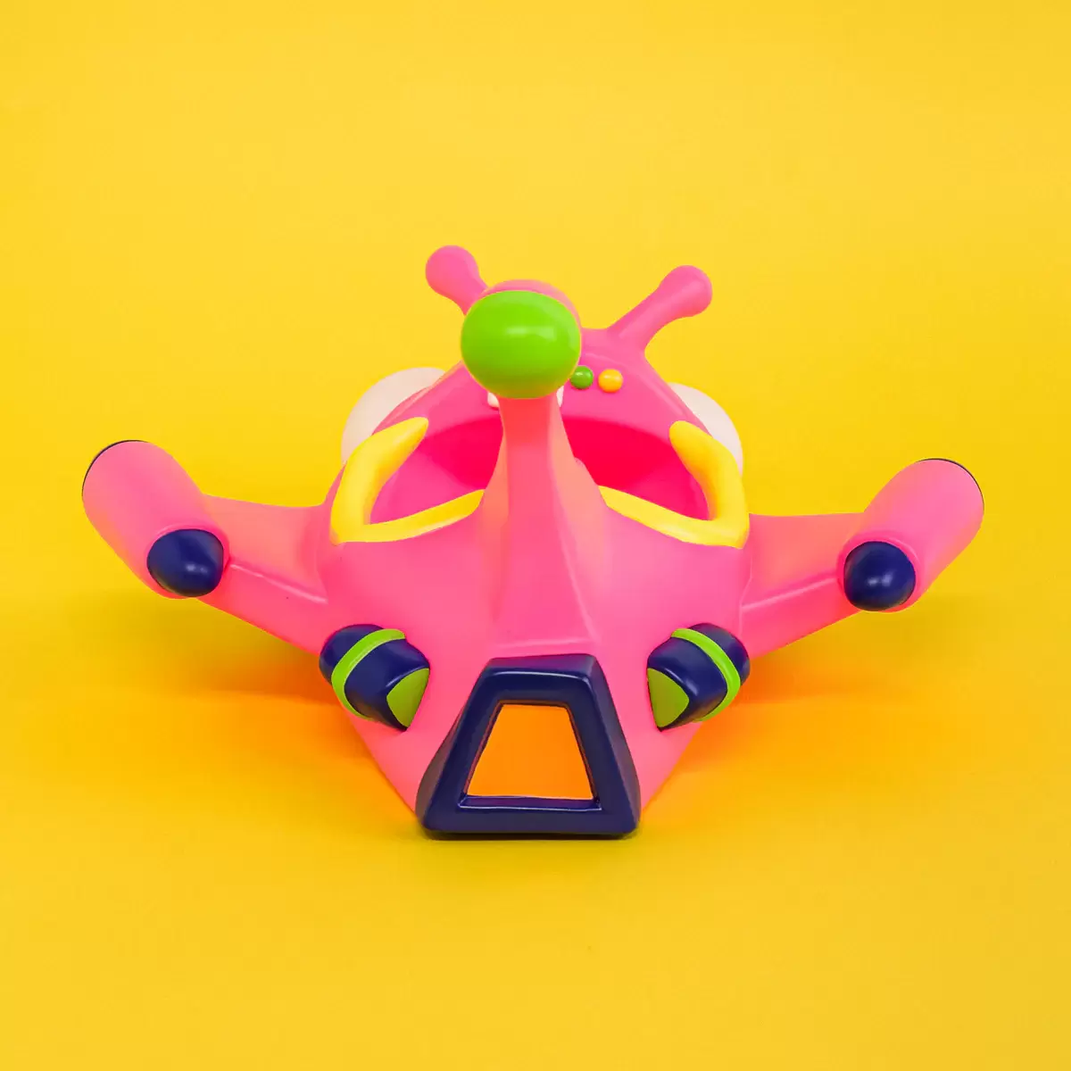 載具的 Space Jet 則高約 12.5 公分,還原了充滿卡通感的臉部造型與機身,可以將 Space People 放置在駕駛座結合把玩,並提供三種配色的款式,大大的展現山崎老師創作的強大魅力!