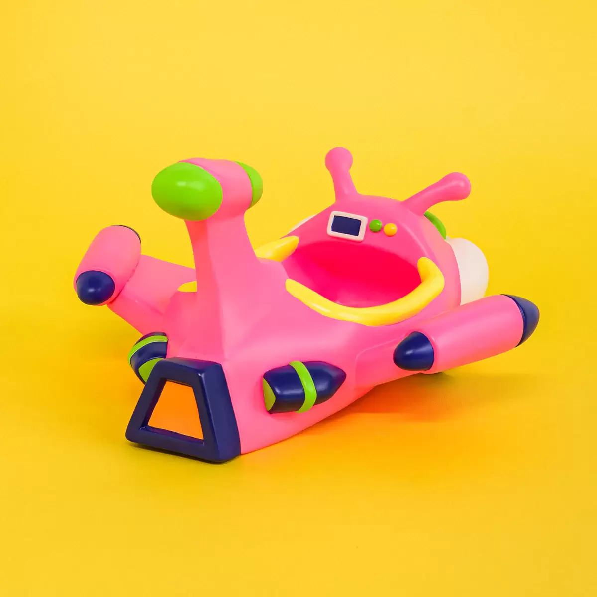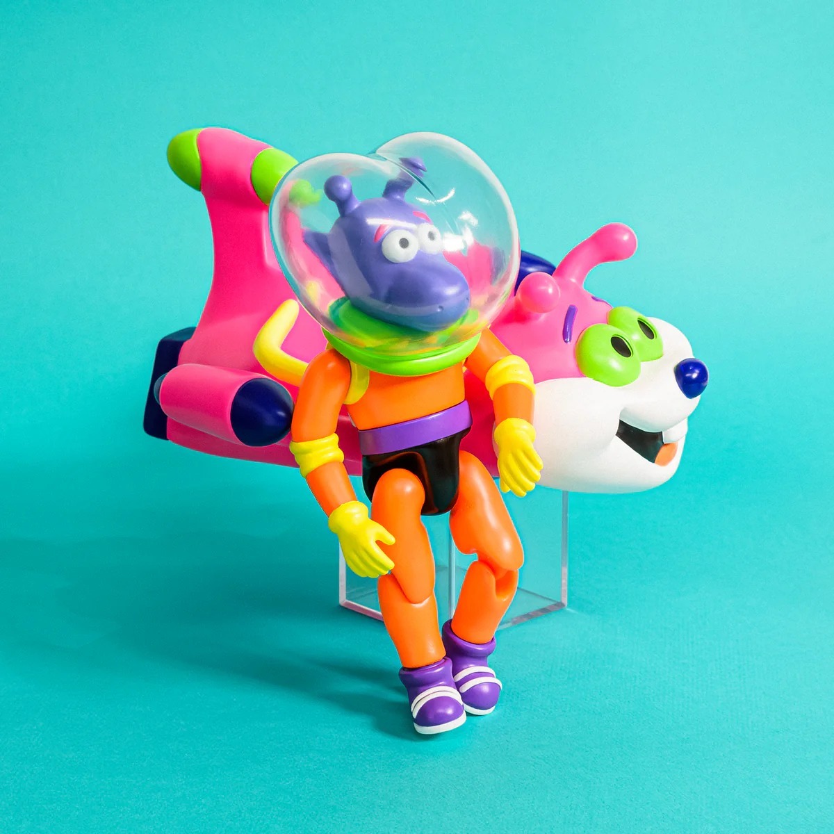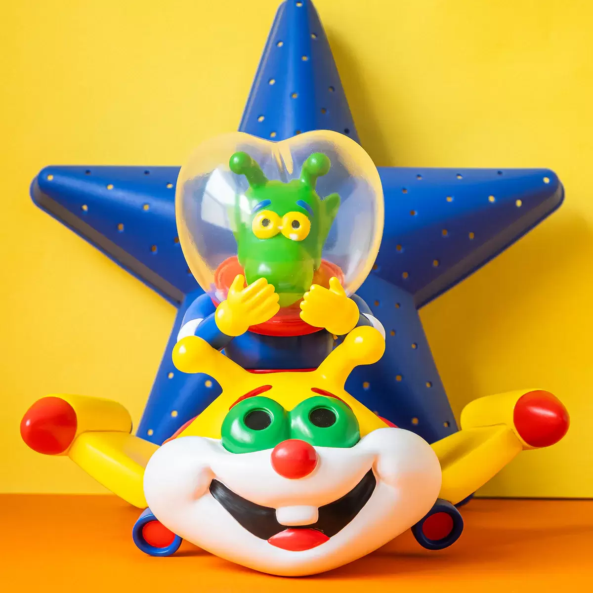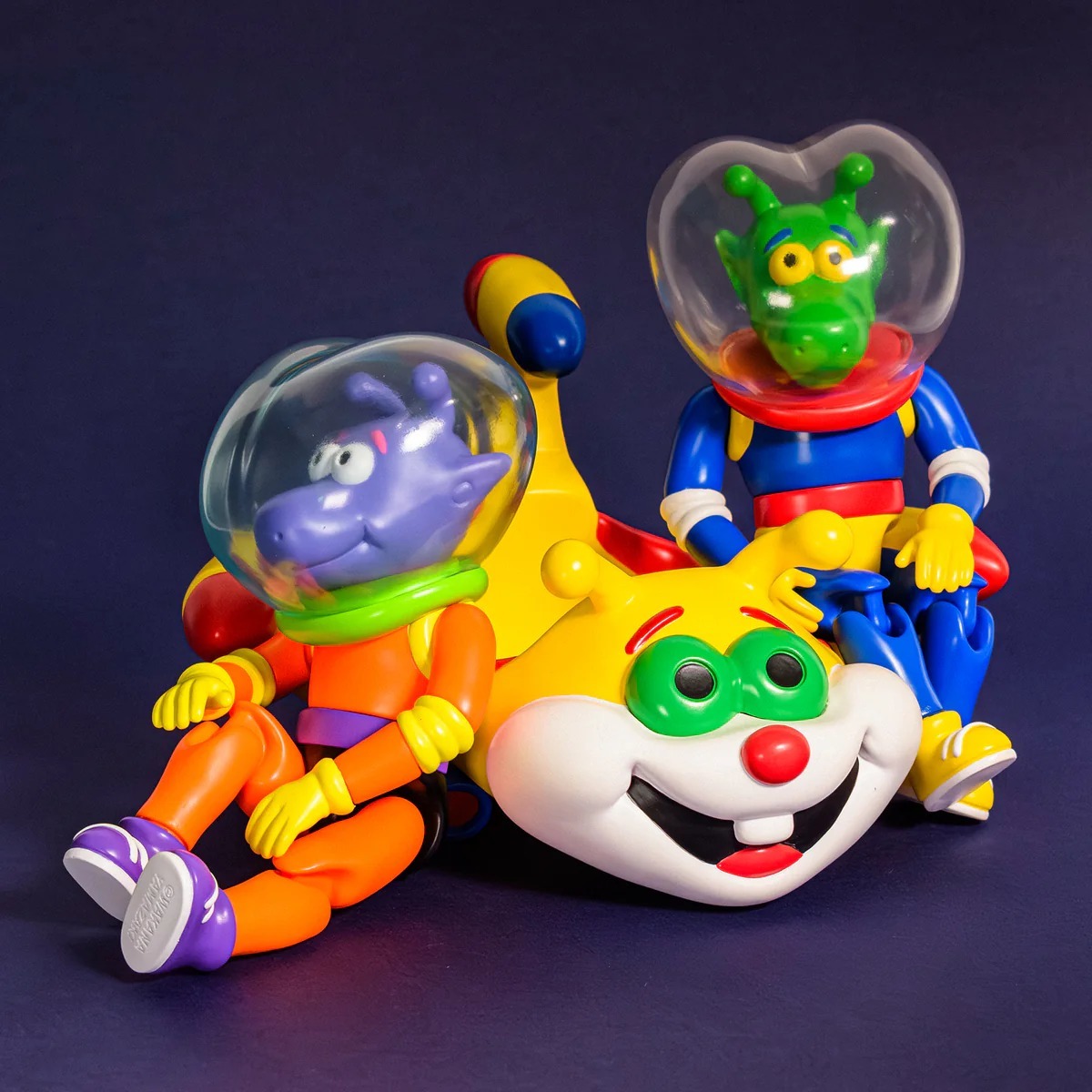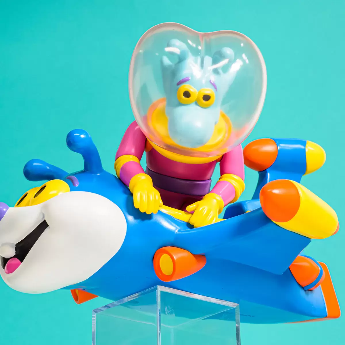 載具的 Space Jet 則高約 12.5 公分,還原了充滿卡通感的臉部造型與機身,可以將 Space People 放置在駕駛座結合把玩,並提供三種配色的款式,大大的展現山崎老師創作的強大魅力!