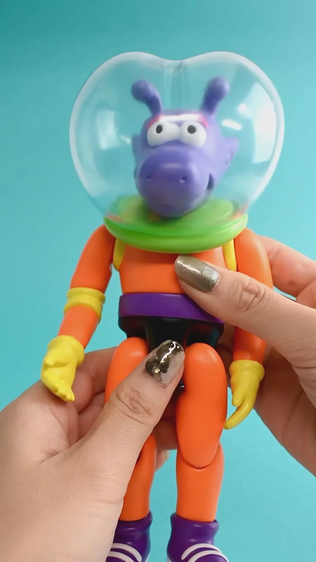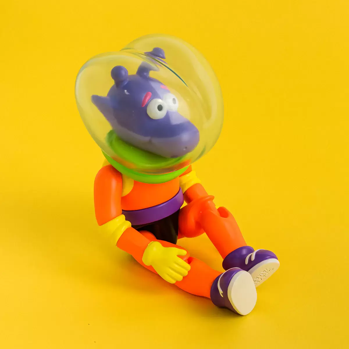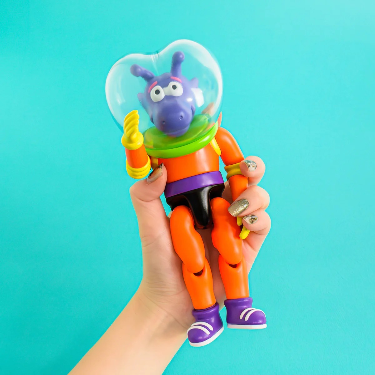 這次的「Space People & Space Jet」以中空工房優秀的技術製作,將山崎若菜老師筆下幽默的外星人與未來載具立體化!Space People 本體高約 20 公分,以鮮豔顏色呈現出的簡約太空服造型相當的賞心悅目,透明材質打造的心形氧氣罩更是點睛之筆!可動部分看起來在肩膀、手肘作有單軸關節可以自在轉動,腿部更是有驚人的後彎關節設計,在軟膠的材質限制下創造出極高的可玩性!