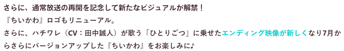 另外,官方也預告過去片尾由小八 ( CV : 田中誠人 ) 所演唱的「ひとりごつ」,將會有全新的 ED 動畫,展現全新篇章的新氣象。