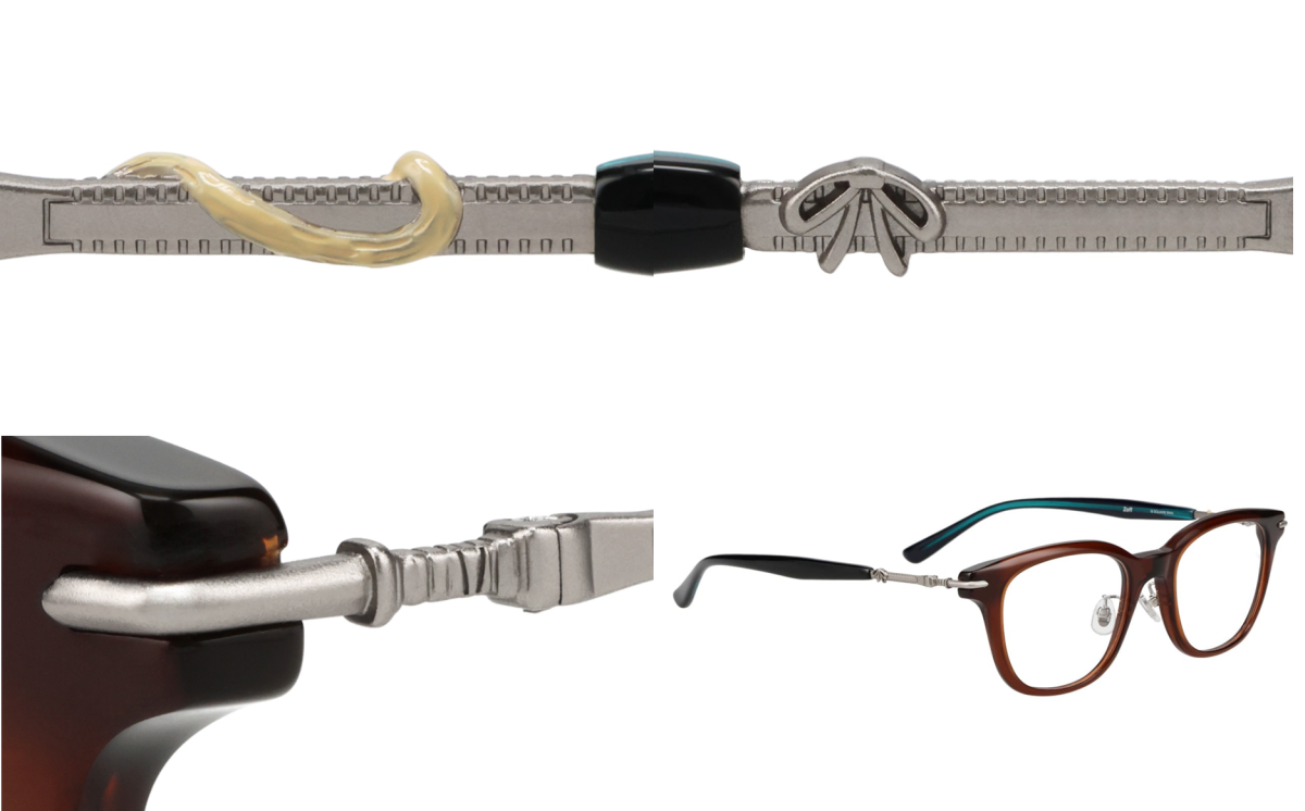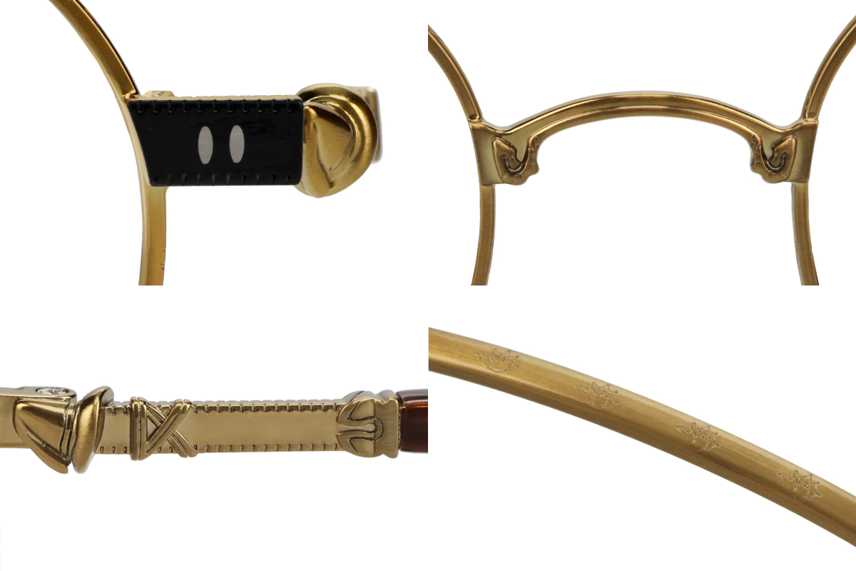 鏡腳採用了吉坦服裝的綠色調,鉸鏈附近還加上他的武器「匕首」、變身的尾巴、以及脖子上的緞帶等元素的金屬裝飾。