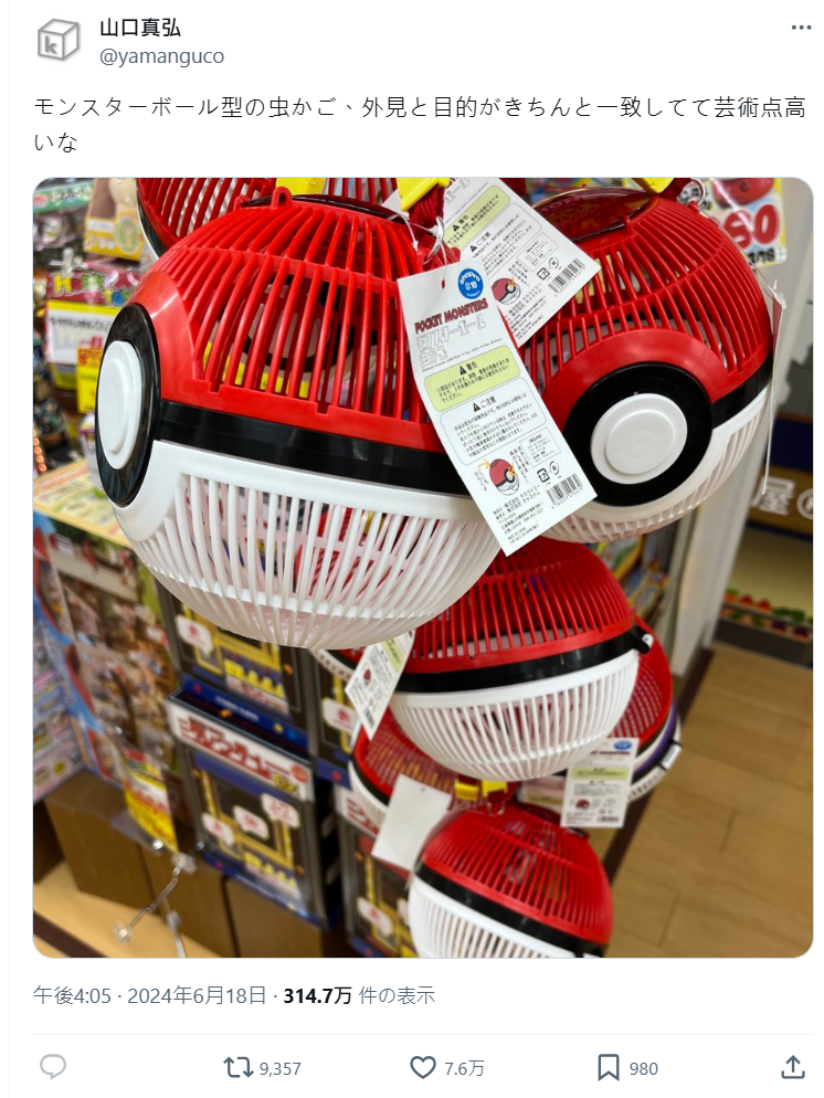 事實上過去 X 上的推主發文表示:「做成精靈球造型的昆蟲飼育籠,外型跟用途完全對上,藝術分超高。」