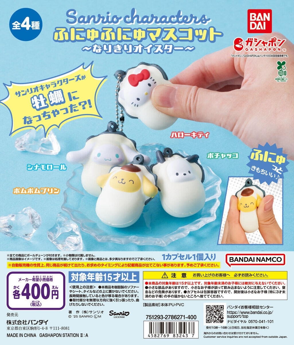 日本萬代公司轉蛋事業部 GASHAPON 將推出人氣三麗鷗明星主題新品——「三麗鷗明星~變身牡蠣~ Q 彈 Q 彈隊」轉蛋,參考售價為每轉 400 日圓,預計於 2025 年 07 月第三週發售!
