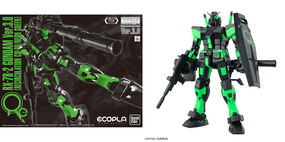 1. EcoPla MG 1/100 RX-78-2 鋼彈 Ver.3.0(霓虹綠回收版) → 每間房送一組