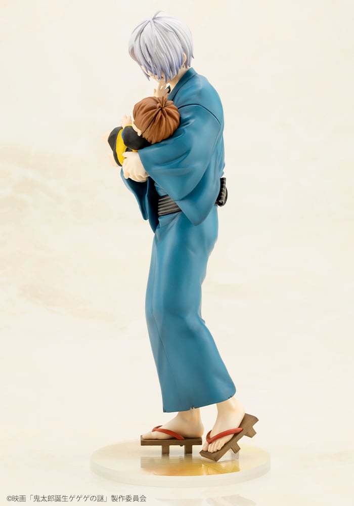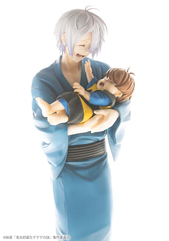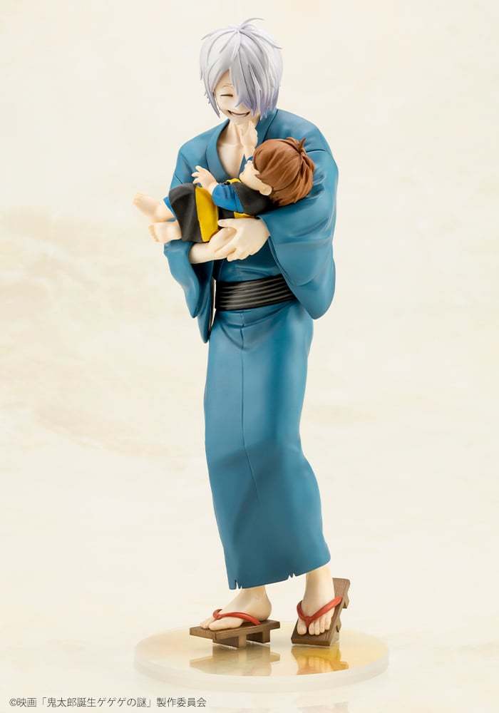 壽屋「鬼太郎之父 & 嬰兒鬼太郎」無比例模型,以劇場版《鬼太郎誕生咯咯咯之謎》的電影入場特典插畫為基礎,並由角色設計師谷田部透湖老師為了此模型特別繪製全身插畫,再依照新規插畫的造型進行立體化!細膩刻劃鬼太郎之父-咯咯郎抱著寶寶鬼太郎時喜極而泣的慈愛一面。遮住左眼的白髮、藍色和服的自然皺褶和輕柔的手勢、嬰兒鬼太郎的小手手以及生動的表情與淚珠...傳達出只有模型才能感受到的深刻父子情與存在感!