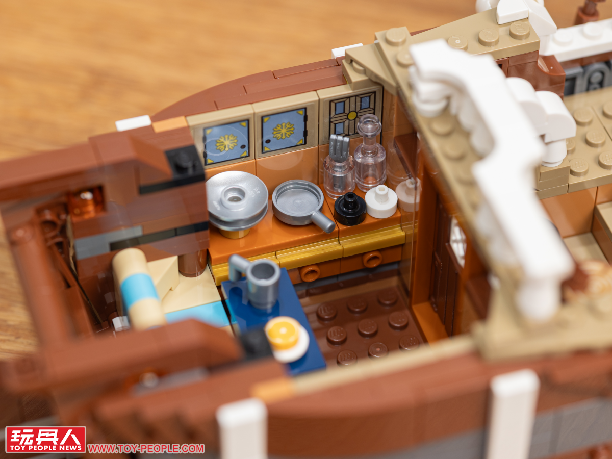 ▼ 再來是船尾的部分,可以從階梯往上走到船桅、看看後面的兩顆橘子樹;內部的空間表現也很精彩!船舵也具備可動機構。