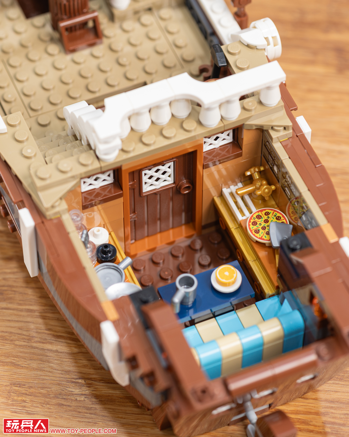 ▼ 船尾的這塊區域能夠單獨取下&展開,可以發現裡頭有許多日常用品。