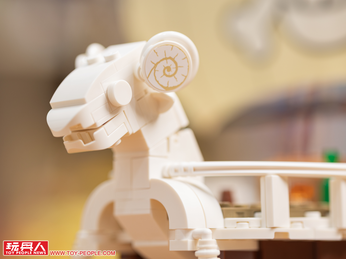 ▼ 接著就來看看梅利號的細節吧!首先是船首的綿羊頭飾像,羊角雕刻的細節則是用貼紙呈現。
