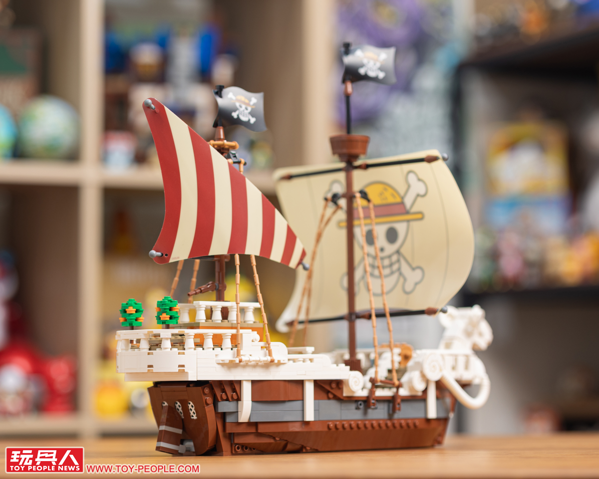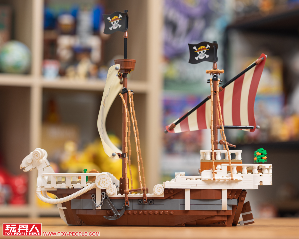、「71042 沉默瑪莉號」(The Silent Mary),以及我們五年前也玩過的「21322 梭魚灣海盜」等;這次樂高化的前進梅利號相信也是深植許多玩具人心中的海賊船,是乘載著草帽海賊團一伙的夢想之船。光是拆開包裝、看見那張超大前帆真的就超級熱血。