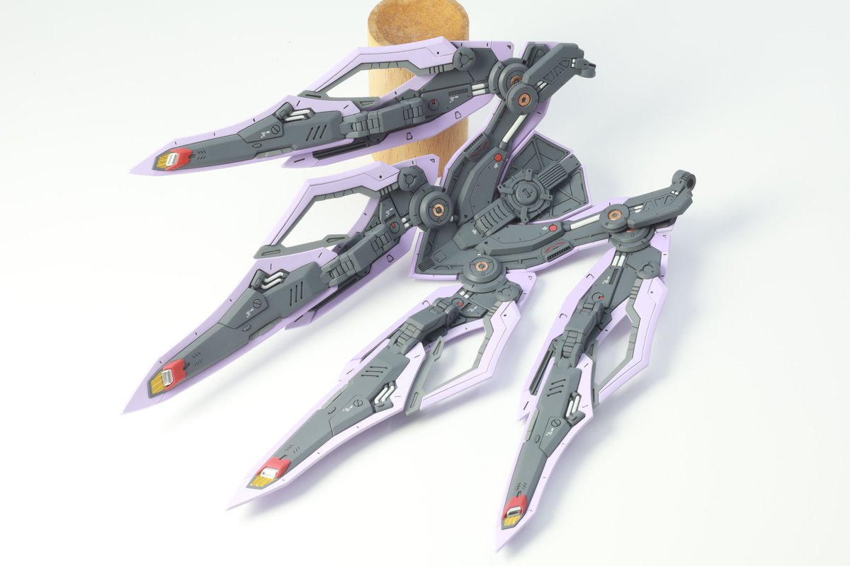將裙甲展開後,設定是可以透過精神感應框架控制,讓裙甲像是延伸的巨型手掌,可以分解成四個部分,能自行推進也能攻擊敵機。