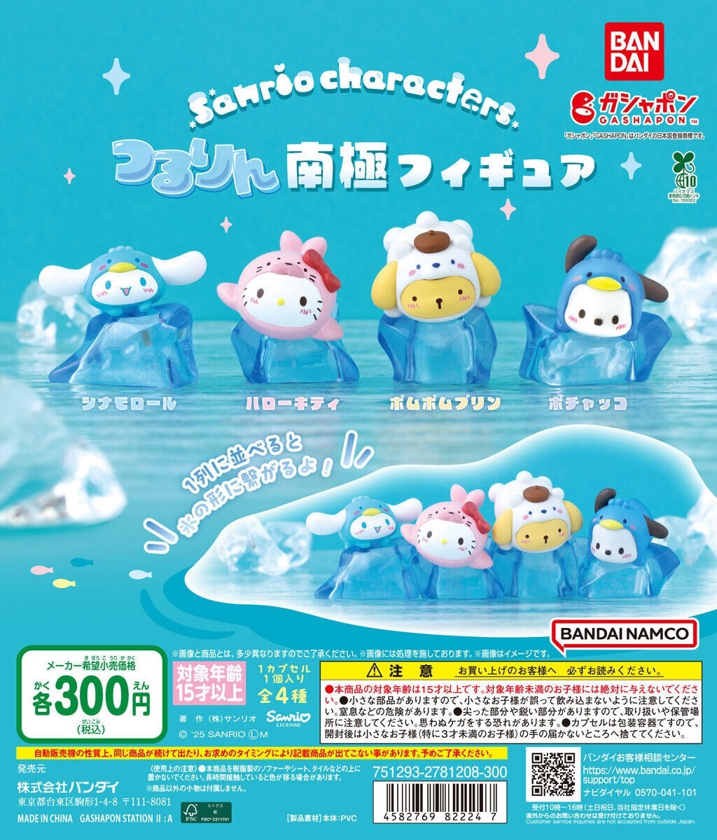 日本萬代公司轉蛋事業部 GASHAPON 將推出人氣三麗鷗明星主題新品——「三麗鷗明星 冰冰涼涼的南極角色模型」轉蛋,參考售價為每轉 300 日圓,預計於 2025 年 07 月第四週發售!