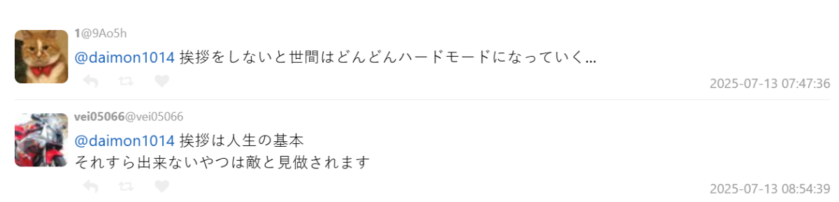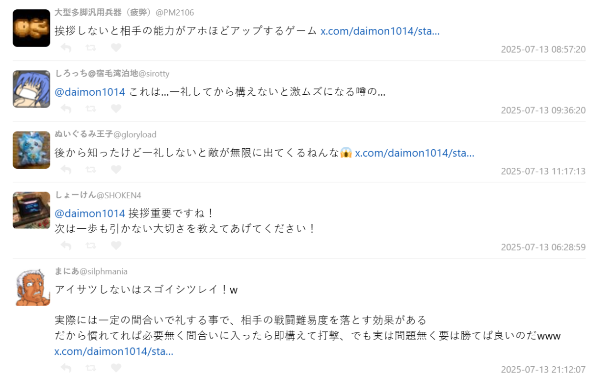 有網友笑稱:「這根本是現實社會的模擬器啊!」、「沒打招呼 = 生活變 Hard 模式」,甚至還有人幽默補充:「現實中也是,沒打招呼會被當成敵人處理」。