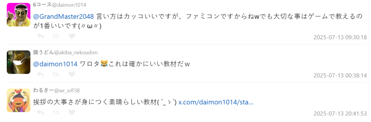 不少網友也表示打招呼在現實也很受用,跟人互動最基本的動作,透過遊戲真的是很好的生活教材。
