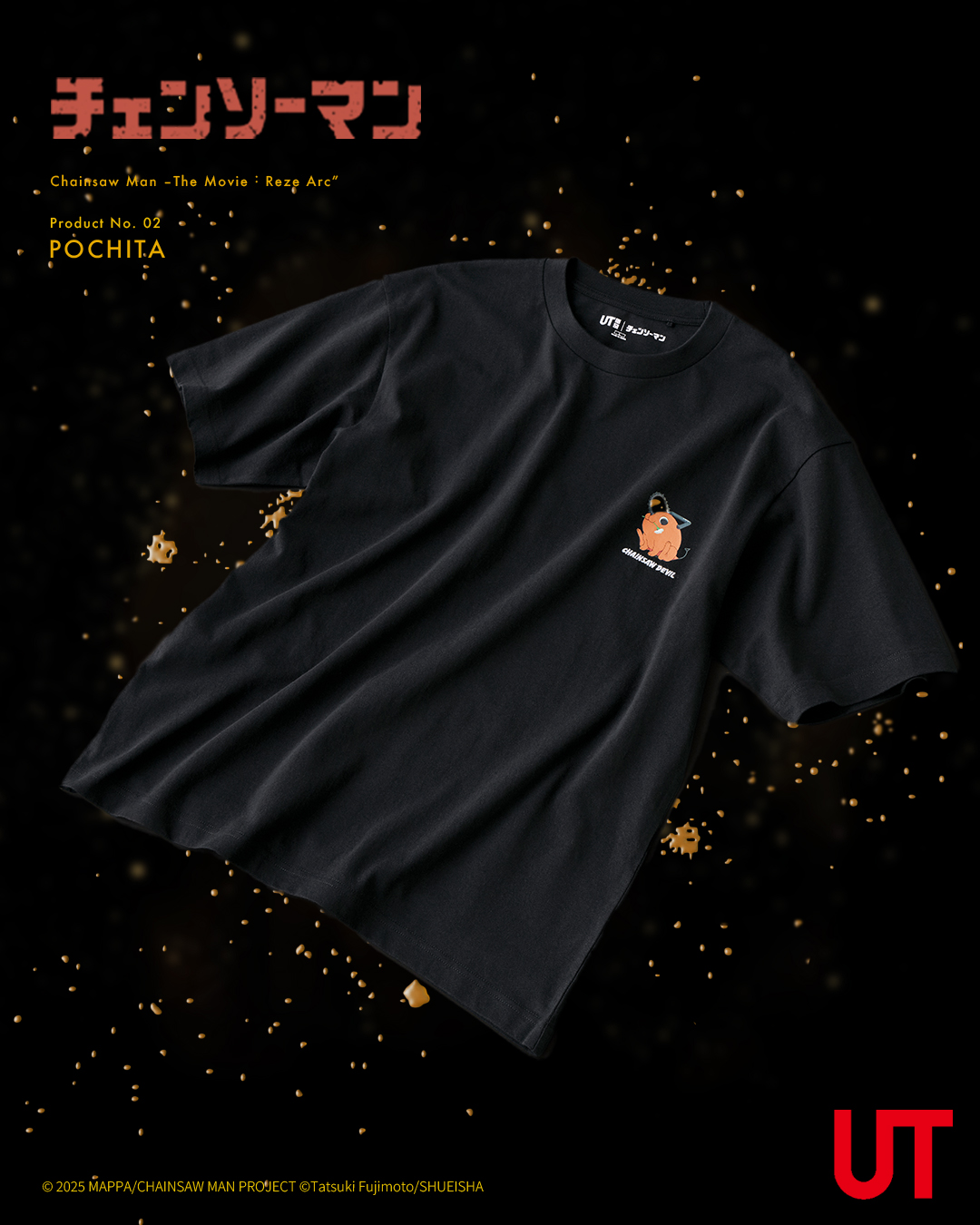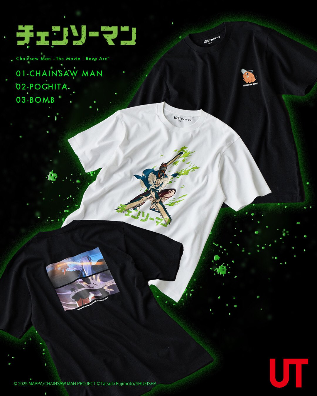 近日宣布將與今年九月上映首部劇場版動畫『蕾潔篇』的《鏈鋸人》合作,推出三款聯名 UT, 將於 2025 年 8 月下旬正式開賣。