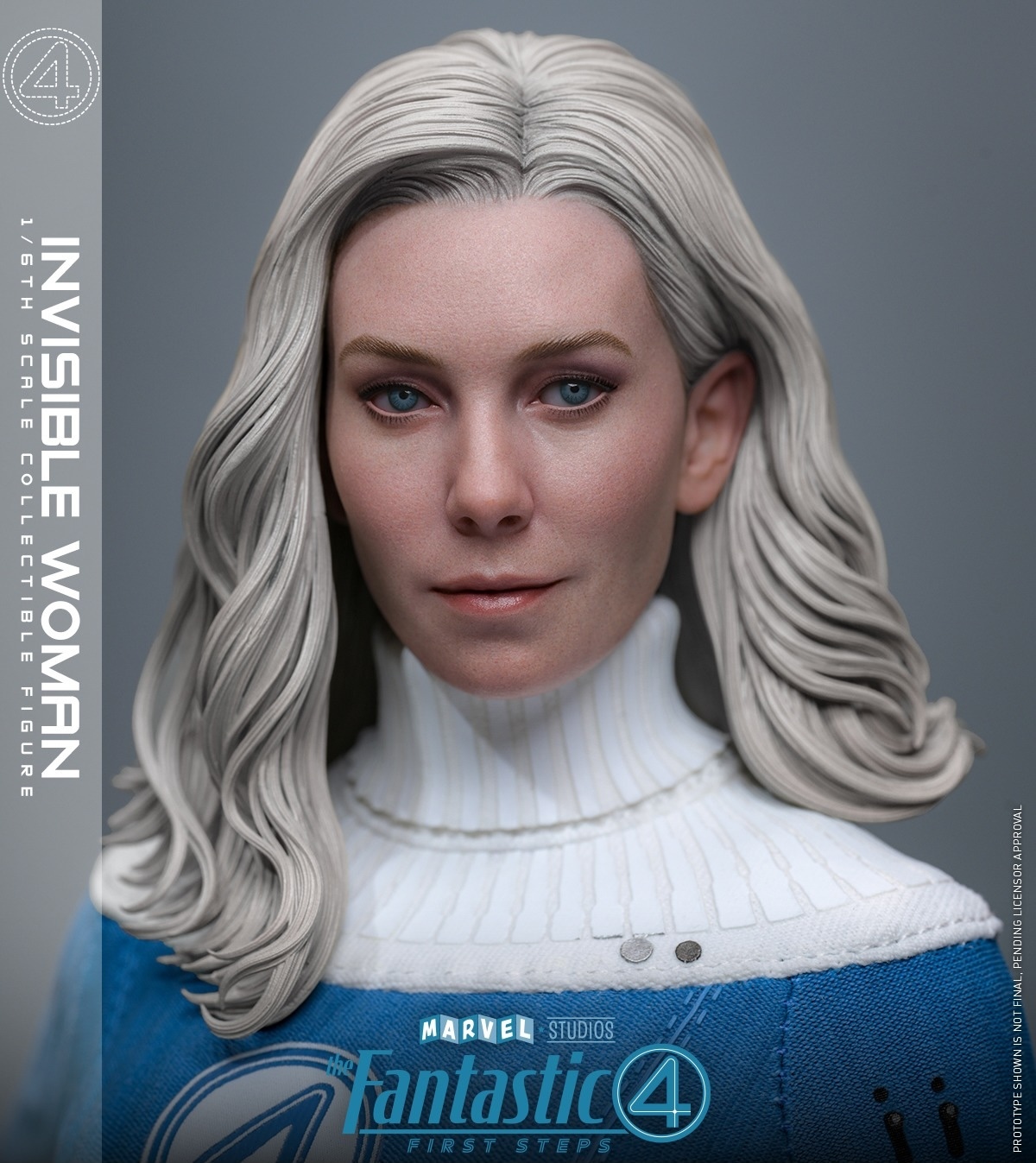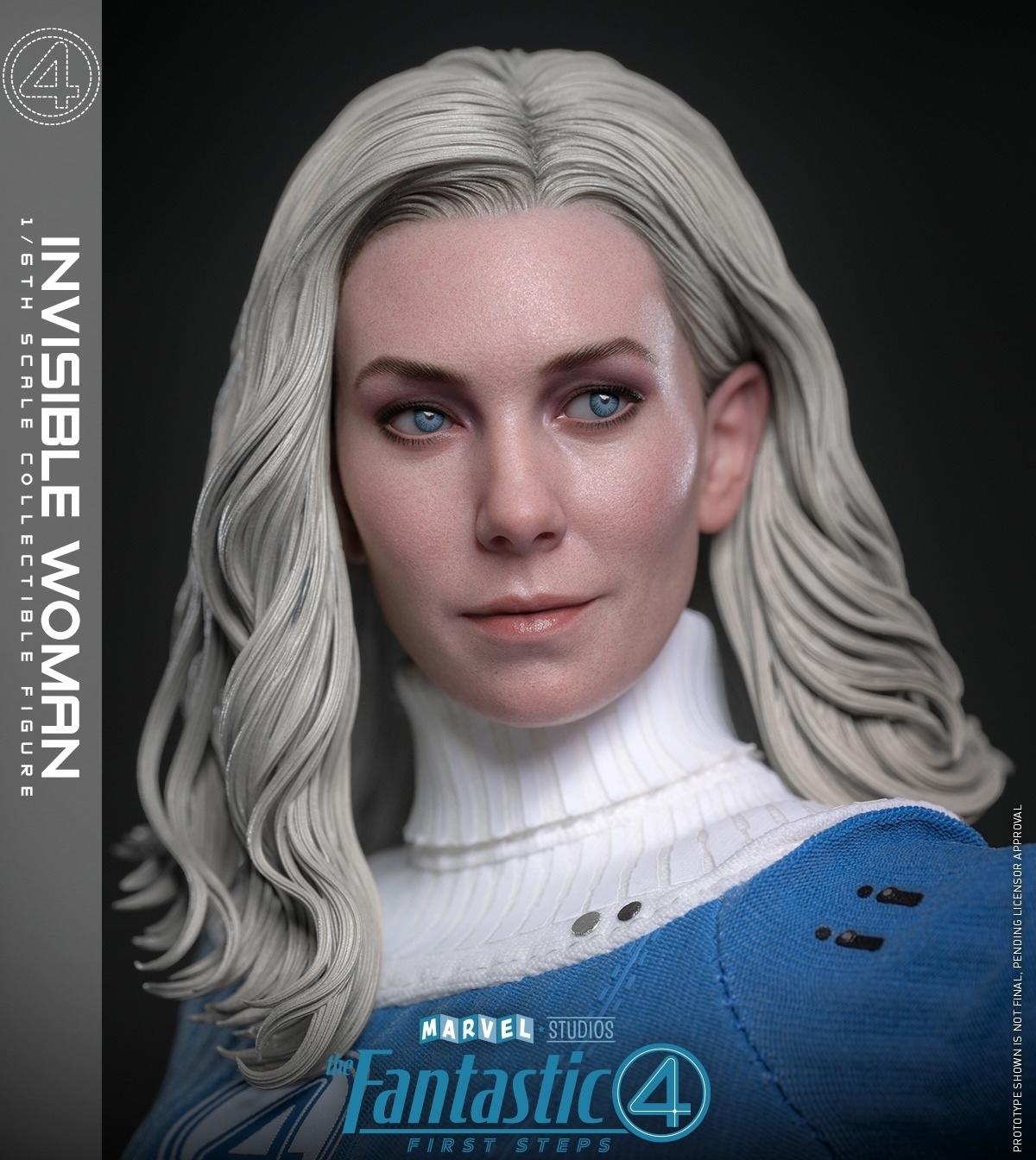 本次的隱形女 1/6 比例收藏級可動人偶高約 28.5 公分,再現演員凡妮莎·寇比(Vanessa Kirby)的精緻五官,深邃的藍色眼眸可以透過可動機構調整視線方向,雕刻還原臉部細緻的肌膚質感與金白色的長髮髮絲紋理,寫實展現在預告中可以看到的形象!