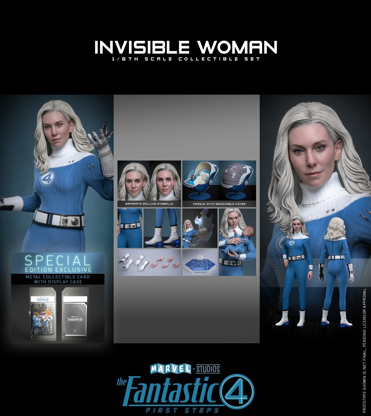 世界知名的香港玩具廠牌 Hot Toys 除「驚奇先生」外,也同部公開了即將上映的電影《驚奇4超人:第一步》主題的兩款新商品——「隱形女」可動人偶、「隱形女 & H.E.R.B.I.E」1/6 比例收藏級可動人偶套組,隱形女獨售參考售價為 1,780 港幣,套組則為 1,980 港幣,將在近期開放預購!