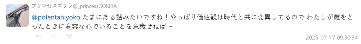 這起「公園飯糰事件」雖小,不過也讓許多人討論起跟長輩的價值觀差異,當然這不論是在日本或台灣,多少都會有遇到。如果能像推主這樣幽默回應,或許也可以化解不必要的爭執吧。
