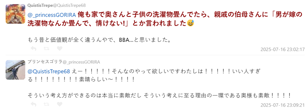 事件在 X 上引發延燒,不少網友陸續分享自己也曾被年長者以「過去規矩」為由,批評現代人的生活習慣。不論是坐著吃飯、邊走邊吃、坐電車時腿太開還被長輩直接拍打,或是男人摺老婆的衣服也被鄰居的長輩抨擊,這些原本稀鬆平常的日常舉動,卻常被過往的價值觀所「批判」。