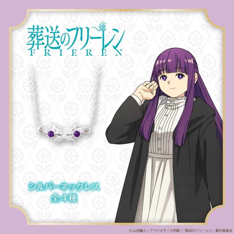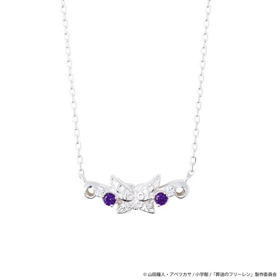 以費倫為靈感設計,項鍊以芙莉蓮送她的蝴蝶造型髮飾為主題,搭配紫色寶石,展現出細緻又高雅的氣質。