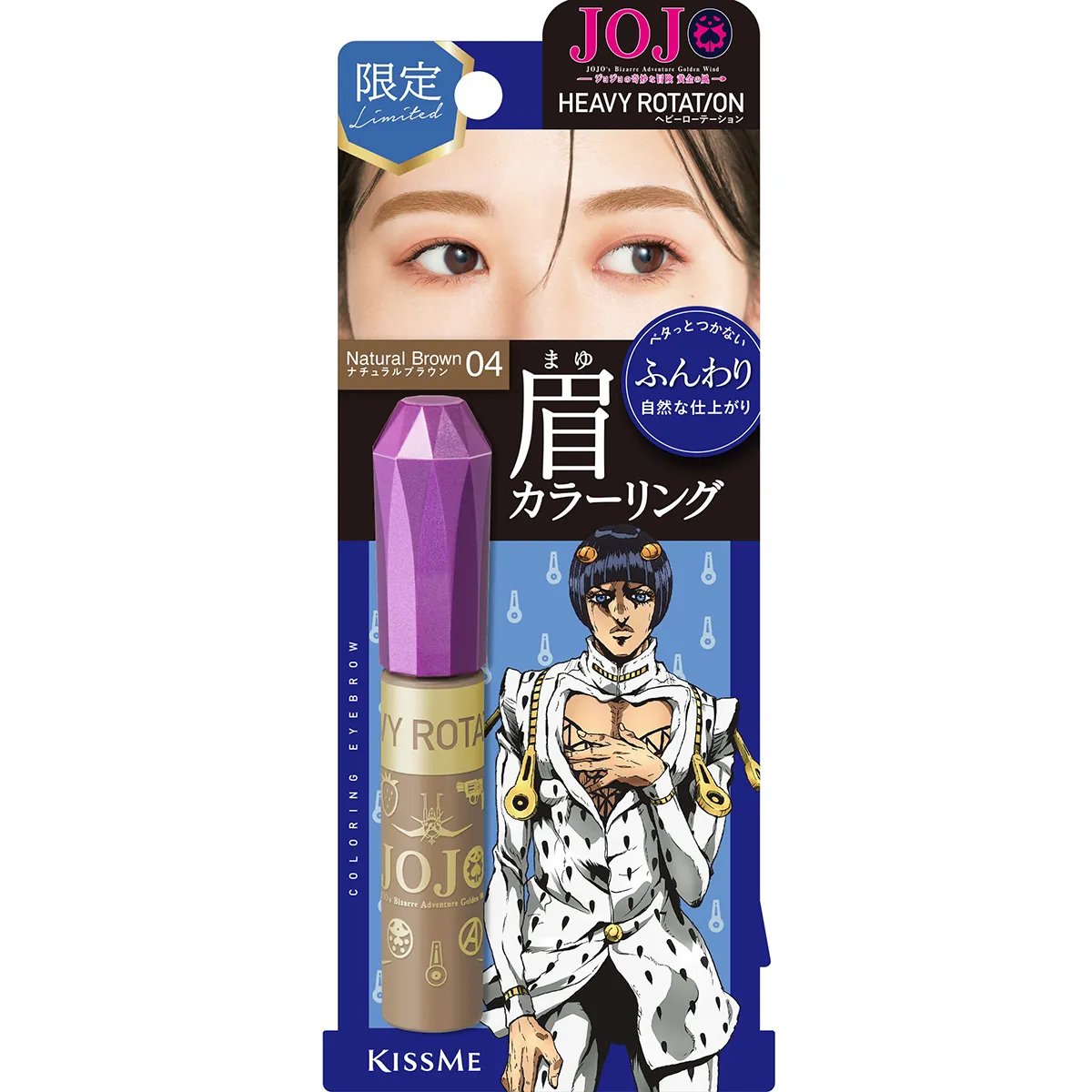 近日宣布與人氣美妝品牌 Kiss Me 旗下的「Heavy Rotation」合作,推出與第五部《JoJo的奇妙冒險 黃金之風》推出限量聯名款眉彩膏,全系列共 4 款色號(03、04、08、09),每款包裝都搭配不同角色的獨家設計,數量有限,2025 年 8 月 8 日開始於日本各通路販售。