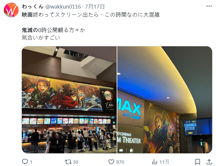 事實上從昨日換日的午夜場開始,幾乎日本所有戲院都被《鬼滅之刃 無限城篇》的觀眾塞爆,幾乎可說是全民運動了 XD。