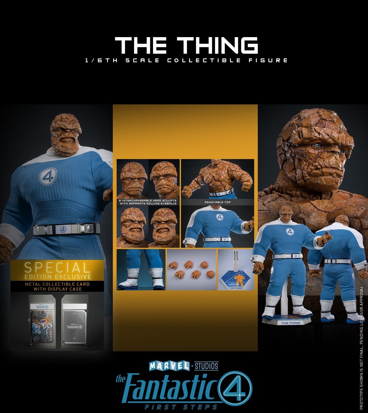 本次的石頭人 1/6 比例收藏級可動人偶高約 31.5 公分,將由演員艾邦・摩斯-貝克許(Ebon Moss-Bachrach)飾演進行動態捕捉、CG 動畫呈現的石頭人立體化,以精湛的雕刻及多層次塗裝栩栩如生的還原他身體表面粗糙的岩石質感,隱藏在岩石間的淡藍色眼眸作有可動可以微調視線,並收錄有一般及預告中可以見到的鬍子造型頭雕,讓各位玩具人可以自由切換擺設!