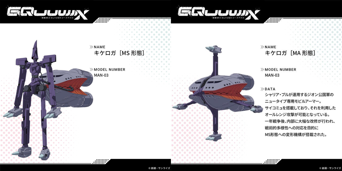「齊克羅加」由夏利安·布爾所駕駛,為吉翁公國軍新人類專用MA。搭載了腦波傳導系統,能藉此進行全方位攻擊。一年戰爭後,內部經過大幅改裝,為了能應對多樣化的戰術,因此搭載了可變換為MS形態的變形機能。