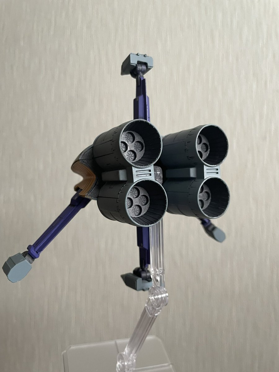變形的時候,先把肩膀的零件拆下來,然後裝上專用的肩膀零件跟連接線。然而連接線的前端,還有 MA 型態外裝橘色那塊的背面,有裝磁鐵,這樣就可以吸住接起來。就完成還原啦!