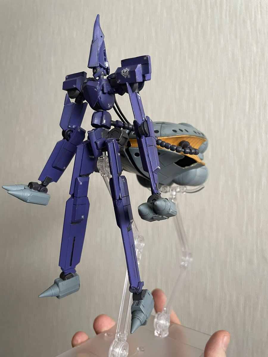 透過塗裝跟水貼使用,還有各種組件的拼裝後完成,透過零件替換的方式,試著還原了 MS跟 MA 兩種型態。
