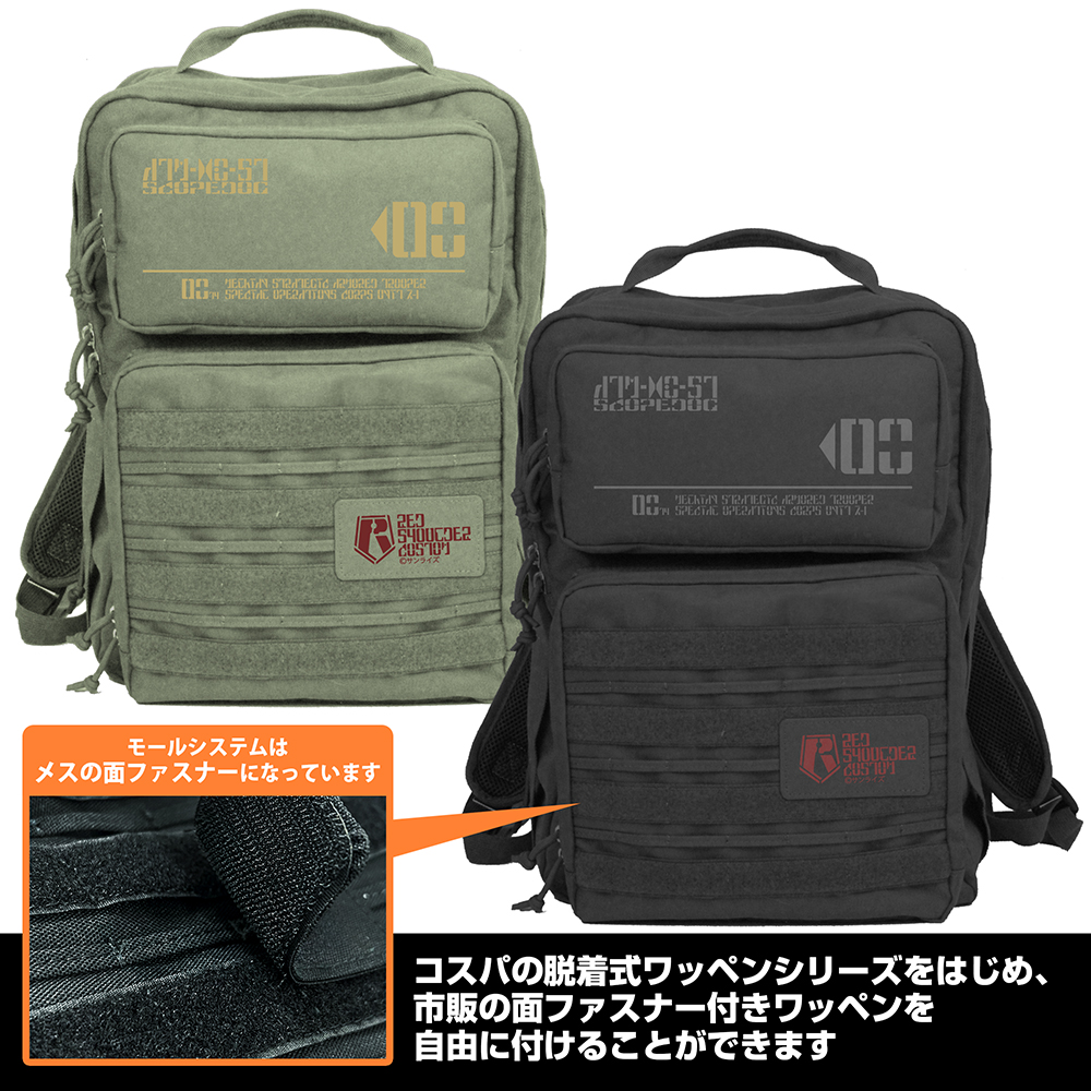 採用作品中的「紅肩隊」為主題設計,背包本體採用 COSPA 熱賣的軍事背包,具有強大的收納力與機能性,並附上原創設計的「紅肩隊可拆式魔鬼氈布章」可以自由配置在你想要的地方。