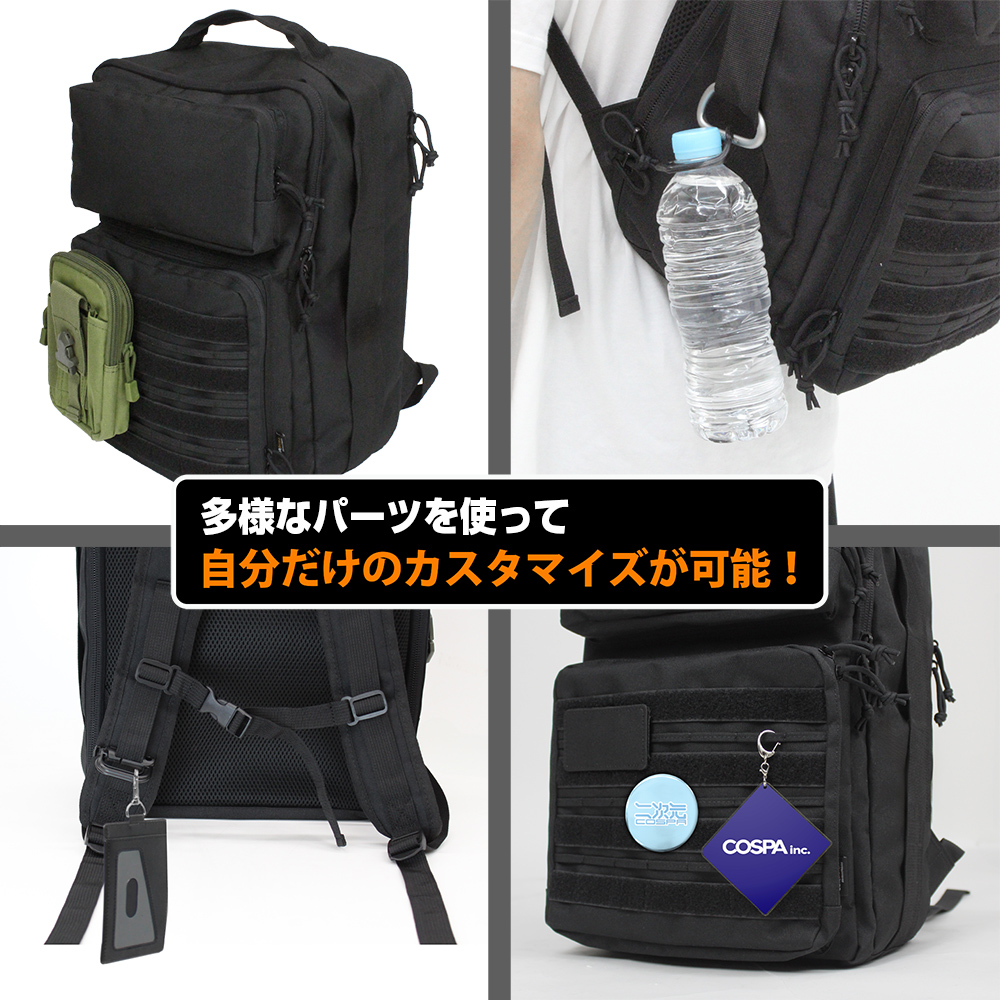 附魔鬼氈條與 Molle 系統織帶,可掛鑰匙圈、布章等小物,讓你的包包更加具有特色。