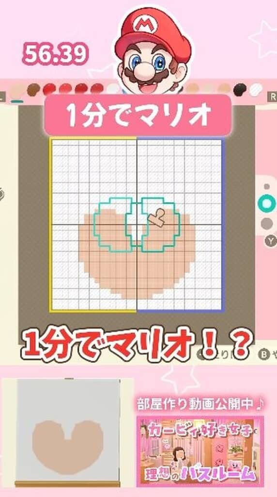 近期有個 YouTube 頻道【あつ森カービィcreate[とん]】投稿了運用《集合啦!動物森友會》遊戲中的「我的設計」,僅僅花 1 分鐘畫出瑪利歐的影片爆紅!影片下方留言區塞滿「1 分鐘畫成這樣也太扯」、「你根本是這領域的天才吧!」的讚嘆聲。