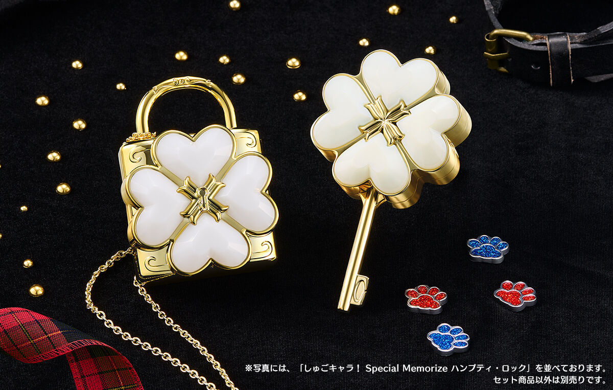 本次的 Special Memorize Dumpty Key 以 1:1 的比例將道具在劇中的造型立體化,使用金色電鍍加工呈現白、金配色的高質感,背面也施以完整的金色電鍍,再現整體造型圓潤可愛的模樣!內建有亞夢、幾斗、和幾斗的守護甜心黑夜的語音,收錄兩人第一次嘗試將 Dumpty Key 插入 Humpty Lock 時的經典場面等超過 50 句台詞,讓各位玩具人可以回味每個令人臉紅心跳的經典瞬間!而先前推出的「Special Memorize Humpty Lock」也同步宣布將人氣再販,肯定是要一起收的吧!